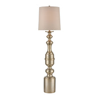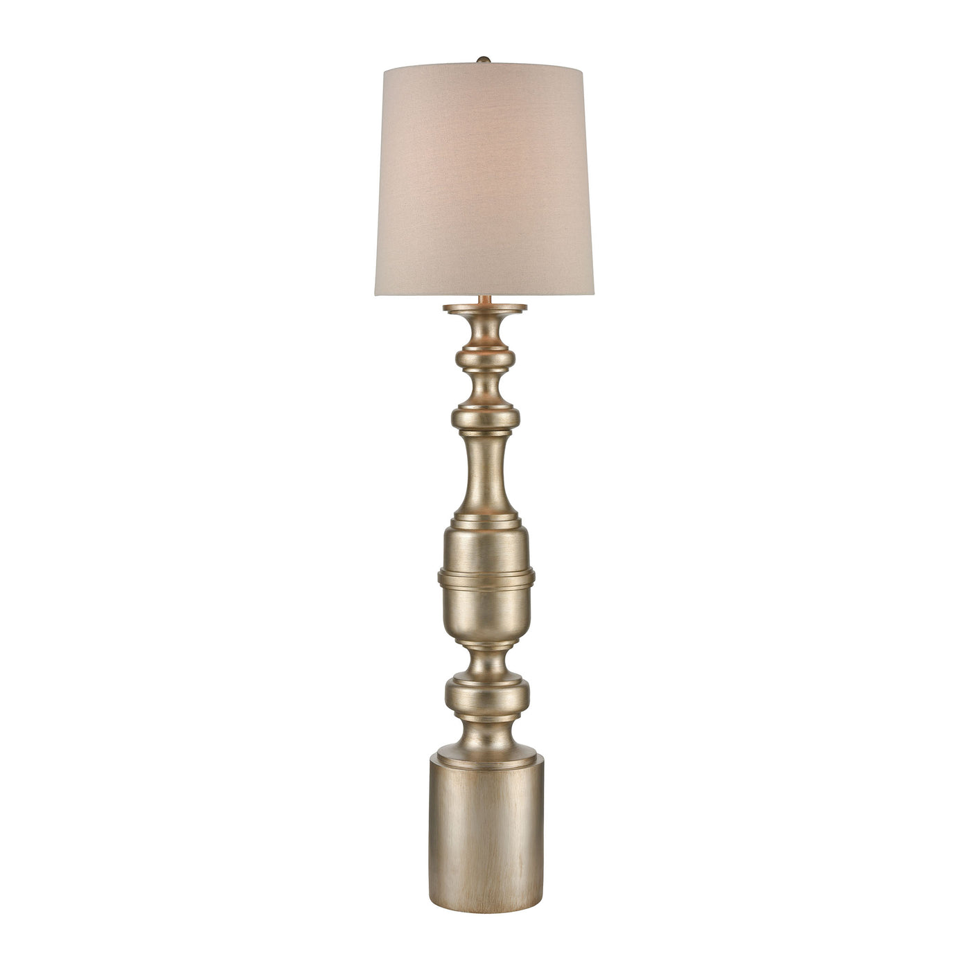 Cabello Oversized Floor Lamp - D4408 This large scale, resin floor lamp creates maximum impact at an affordable price. The base has been given an antique gold finish and it comes topped with a round, hardback shade in soft, taupe linen. Place in a hallway or living room to add a note of relaxed glamour.
