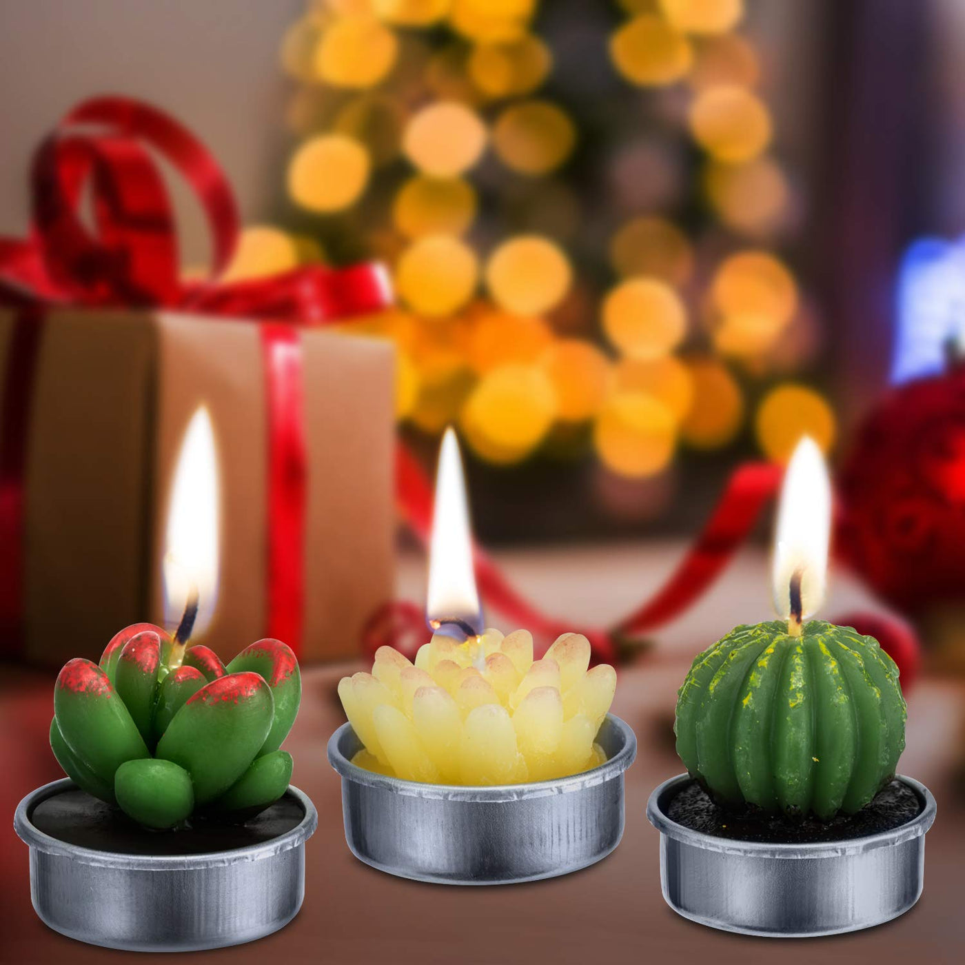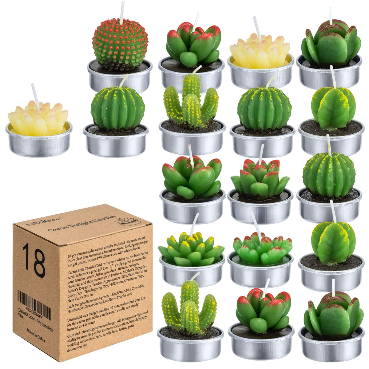 Cactus Tealight Candles(18 Pcs), Artificial Succulents Decorative Tea Light Candles,Perfect For Birthday Wedding Party Home Decor
