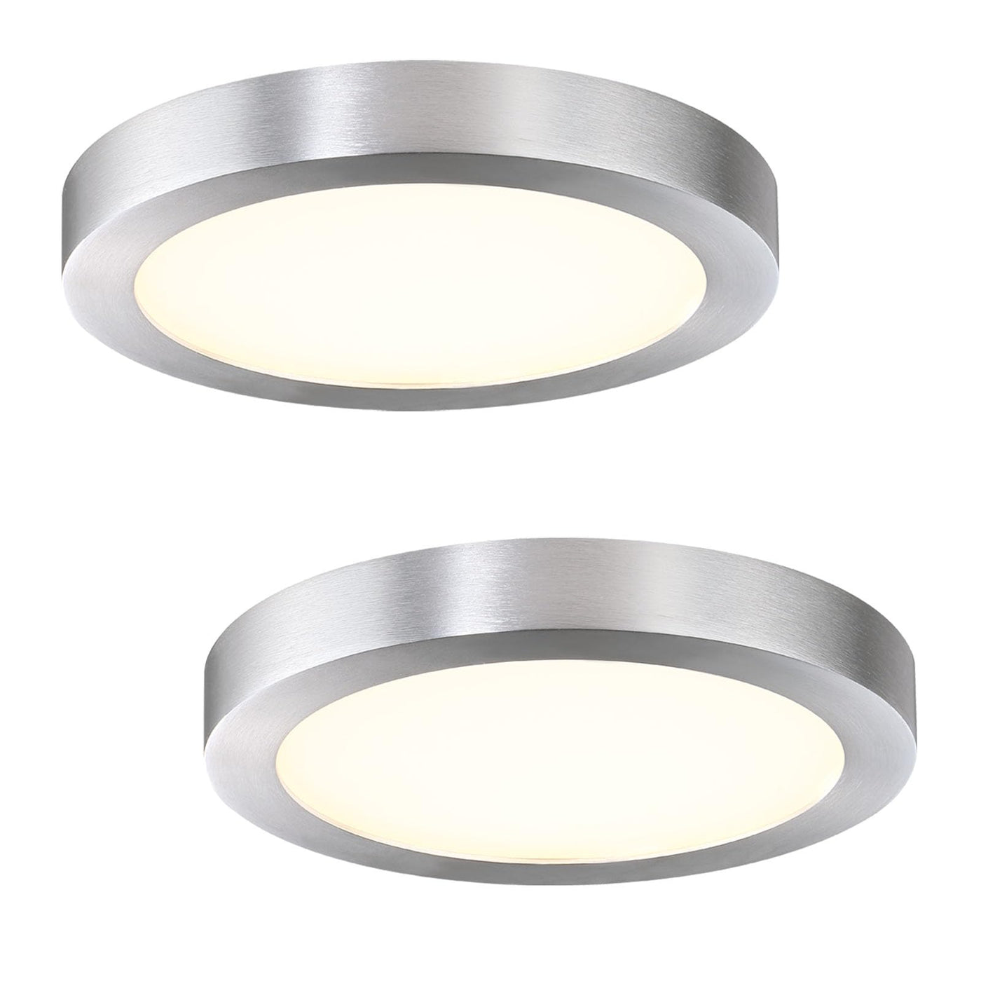 Caisens 10 Inch Flush Mount Ceiling Light, Metal & Glass, Dimmable, Brushed Nickel, 17W, 3000K, 2 Pack, Model CS013