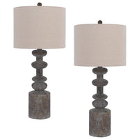 Cal 150W 3 Way Blackfoot Resin Table Lamp - Pebble Color, Sold As Pairs