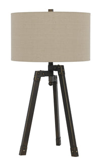 Q: What maintenance is required for the Cal 150W Tripod Table Lamp?A: The lamp's durable metal construction requires minimal maintenance; simply dust it regularly and clean the shade as needed to keep it looking fresh.