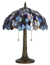 Cal 22.5" Antique Brass Zinc Cast Table Lamp - Tiffany Style, Round Design, Bronze Finish