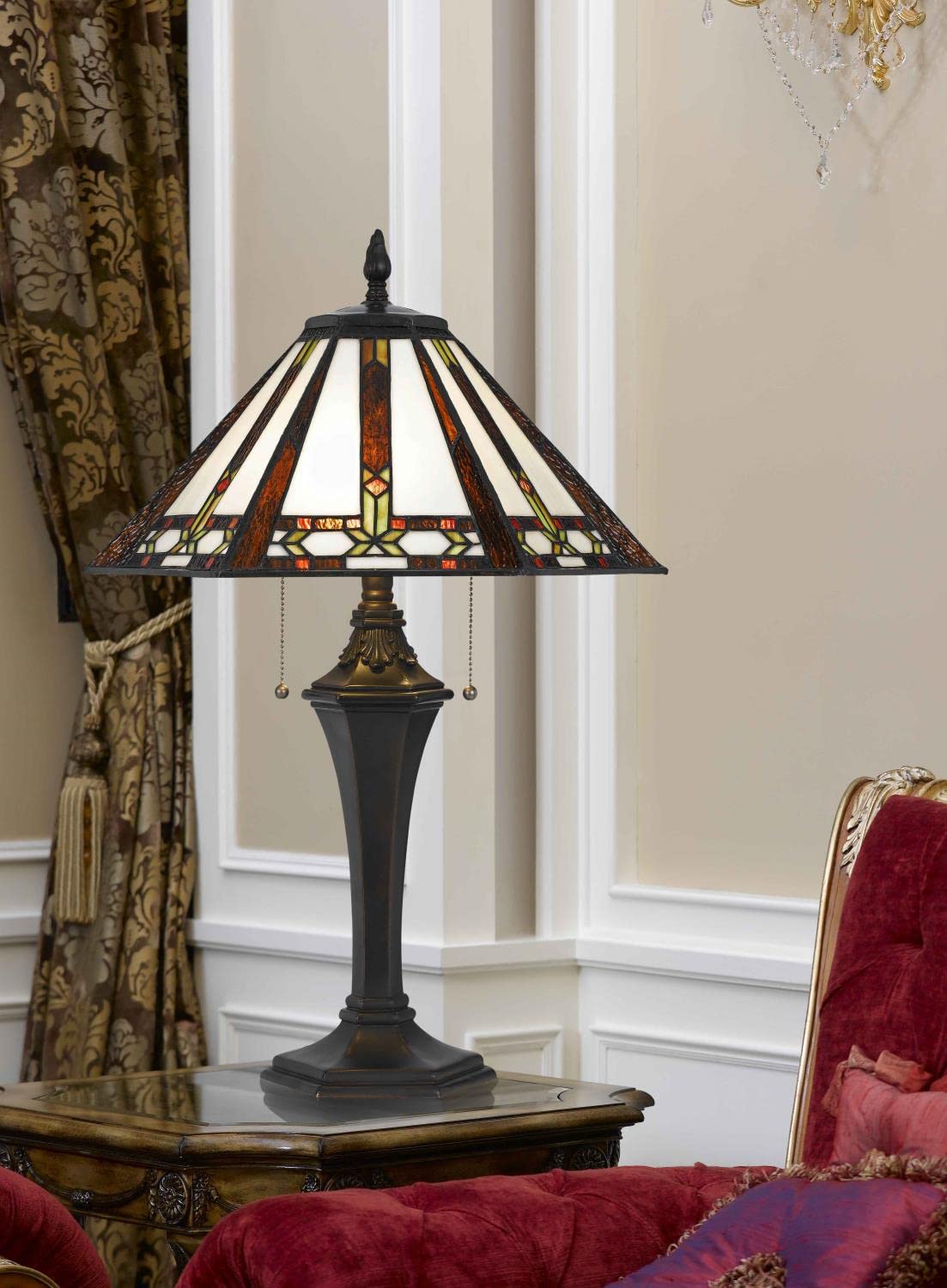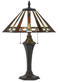 Cal 60W X 2 Tiffany Table Lamp - Bronze Metal, Elegant Design, Perfect For Living Room Decor