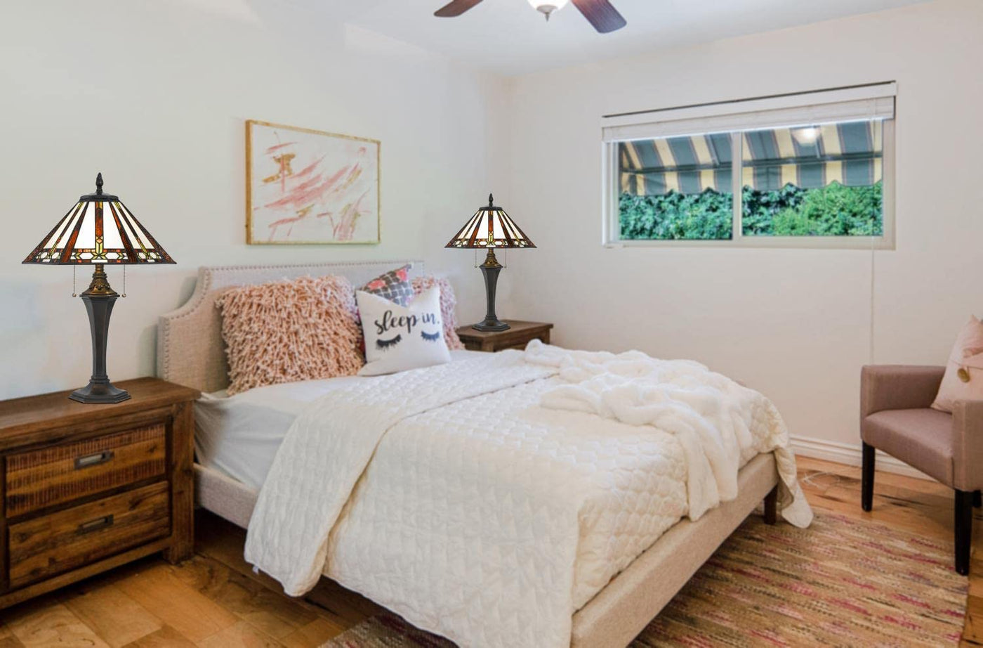 Q: Can I use this lamp in a child's room?A: Absolutely! The Tiffany Table Lamp's colorful stained glass shade and durable construction make it a charming addition to a child's room, providing both style and functionality.