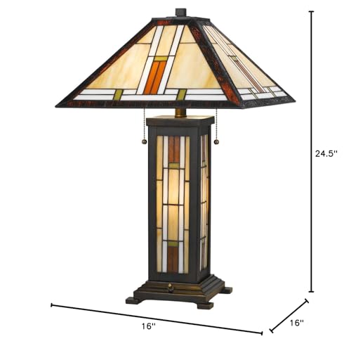 Q: What is the height and width of the 60W X 2 Tiffany Table Lamp?A: The 60W X 2 Tiffany Table Lamp has a height of 24.50 inches and a width of 16.00 inches, making it a perfect size for most tabletops and side tables.