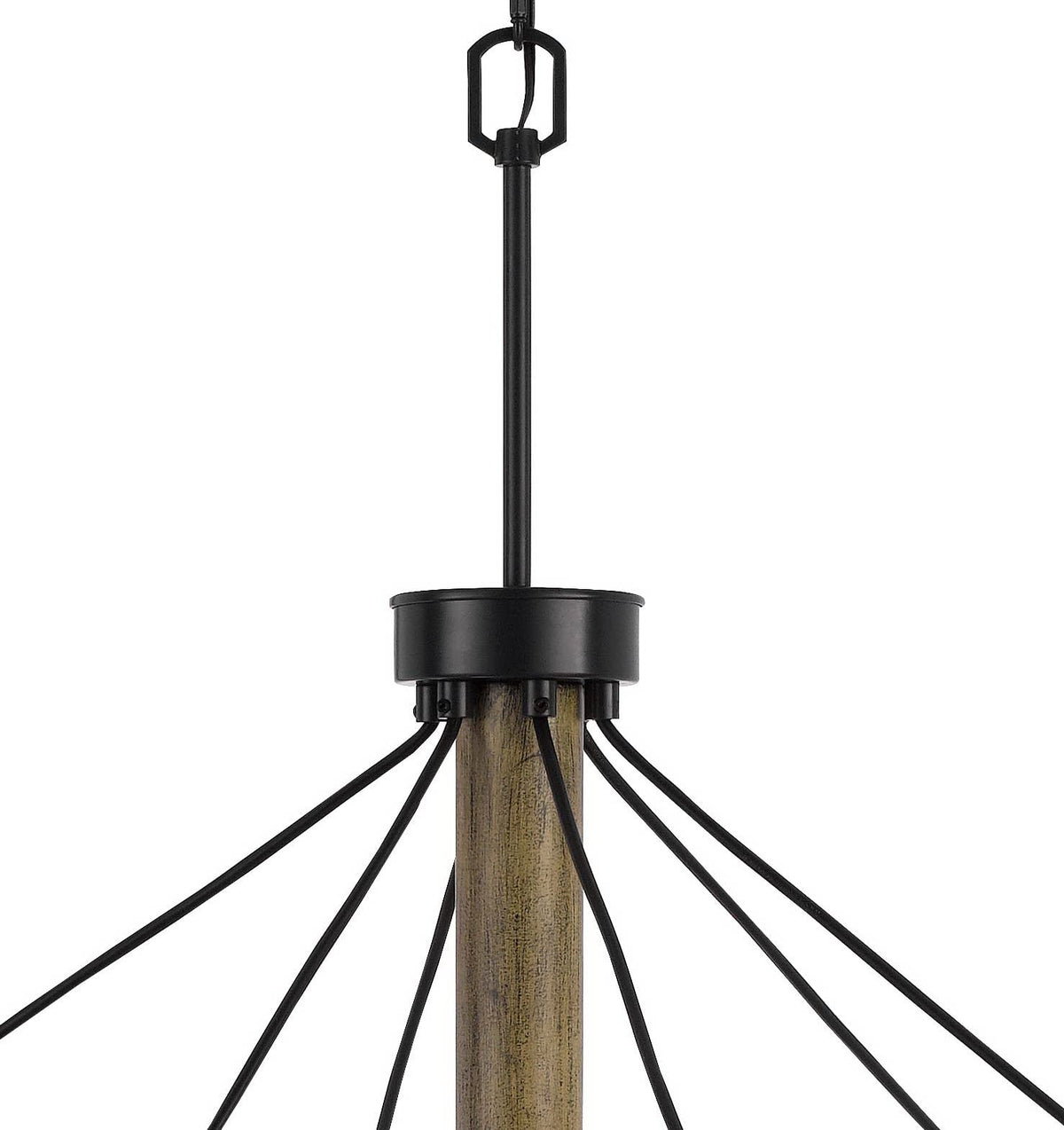 Q: What materials is the chandelier made of?A: The chandelier features a combination of metal and wood, specifically designed with an antique brass finish and rubber wood accents for a stylish and durable fixture.