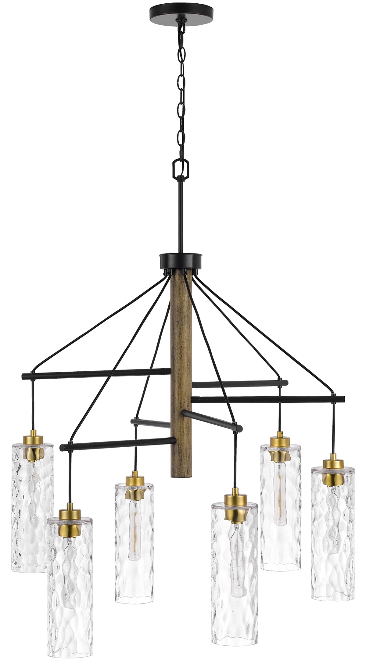 Cal 60W X 6 Rubber Wood Chandelier, Antique Brass With Textured Glass Shades