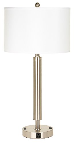 Cal Brushed Steel 60W Lamp With 2 Rocker Switches & 1 Outlet, 15"L X 15"W X