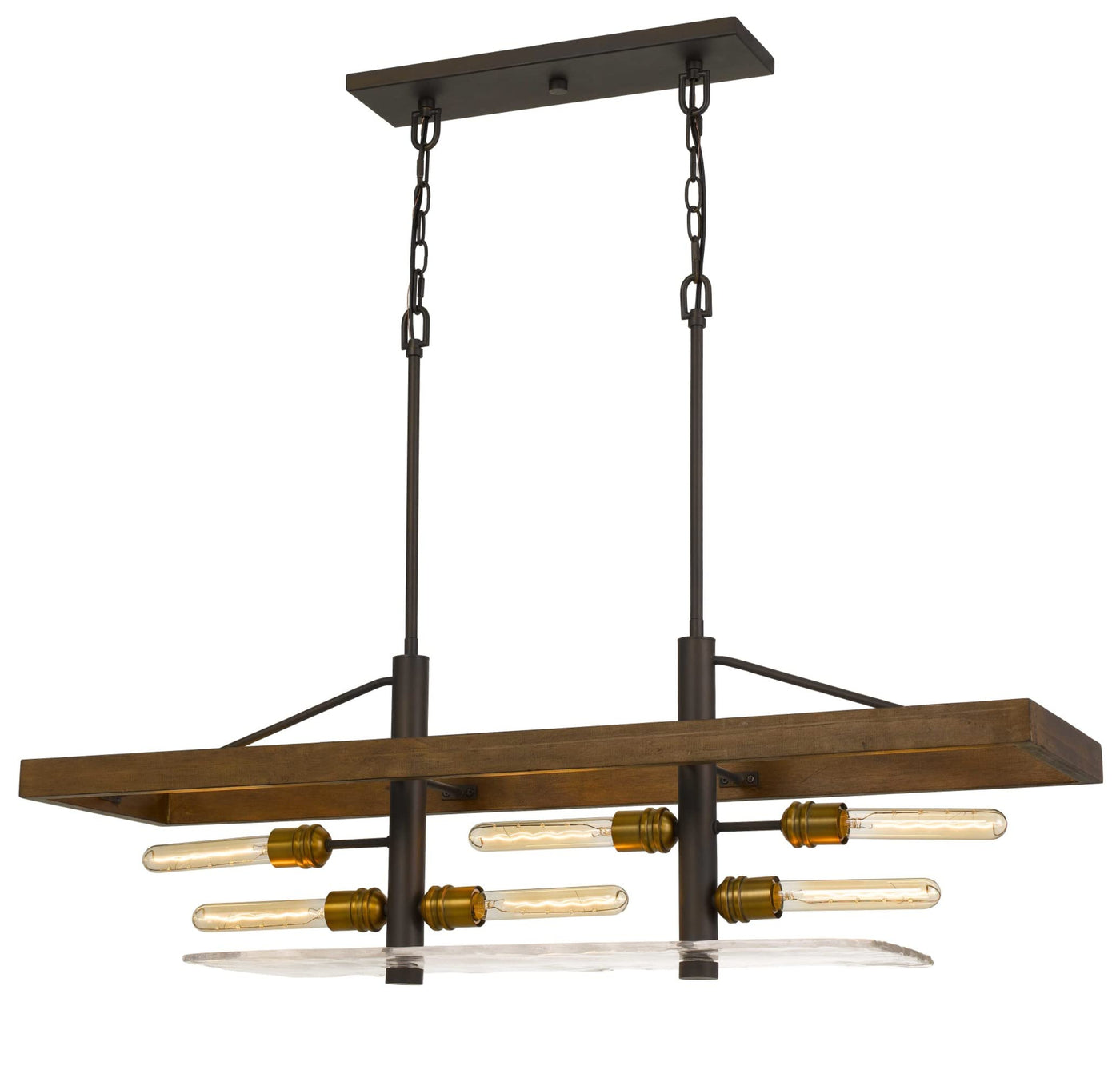 Cal Craiova 60W X 6 Pine Wood Island Chandelier With Hand Crafted Glass (Edison Bulbs Not Included) (Model: Fx-3701-6)