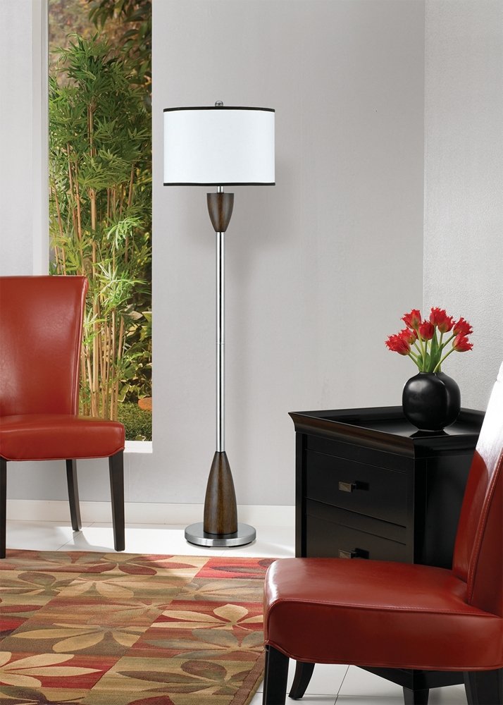 Q: What type of bulbs does the Cal Elizabethe Two Light Floor Lamp use?A: The Cal Elizabethe Two Light Floor Lamp requires two 60-watt bulbs, providing ample lighting for your space.