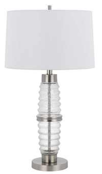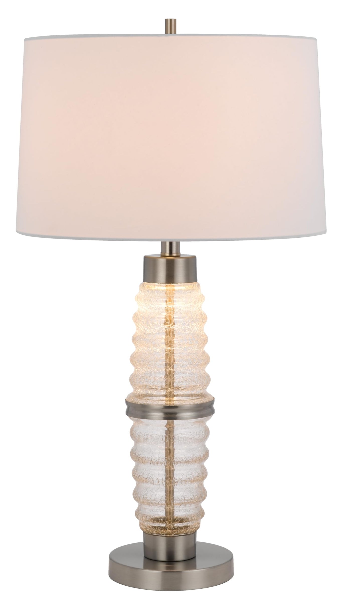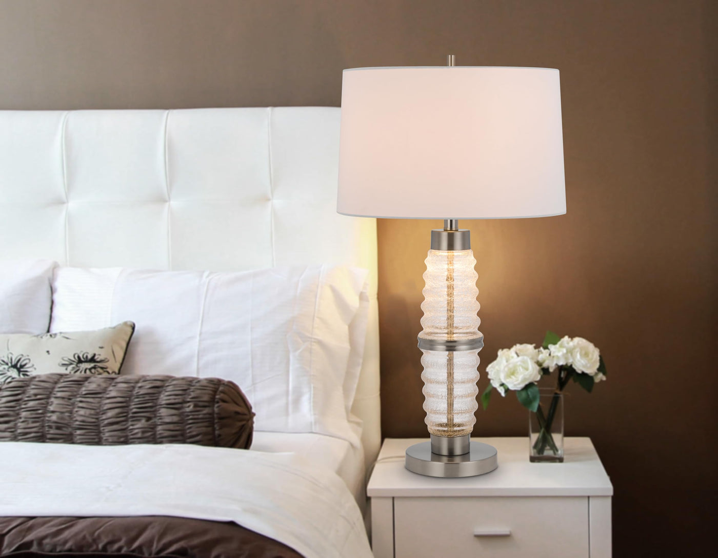 Cal Lighting 100W 3 Way Macon Glass Table Lamp With 2W Led Night Light, Brushed Steel