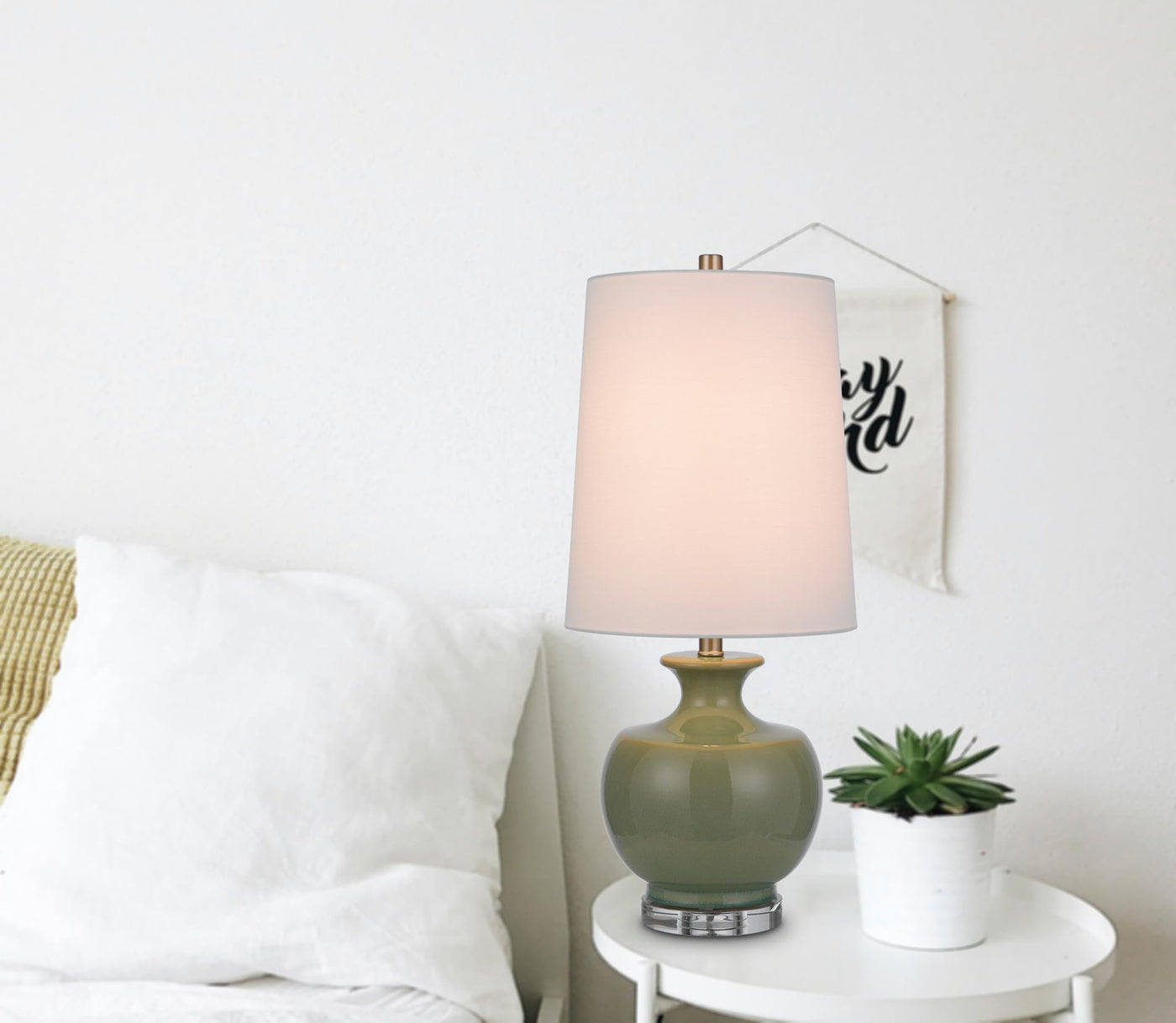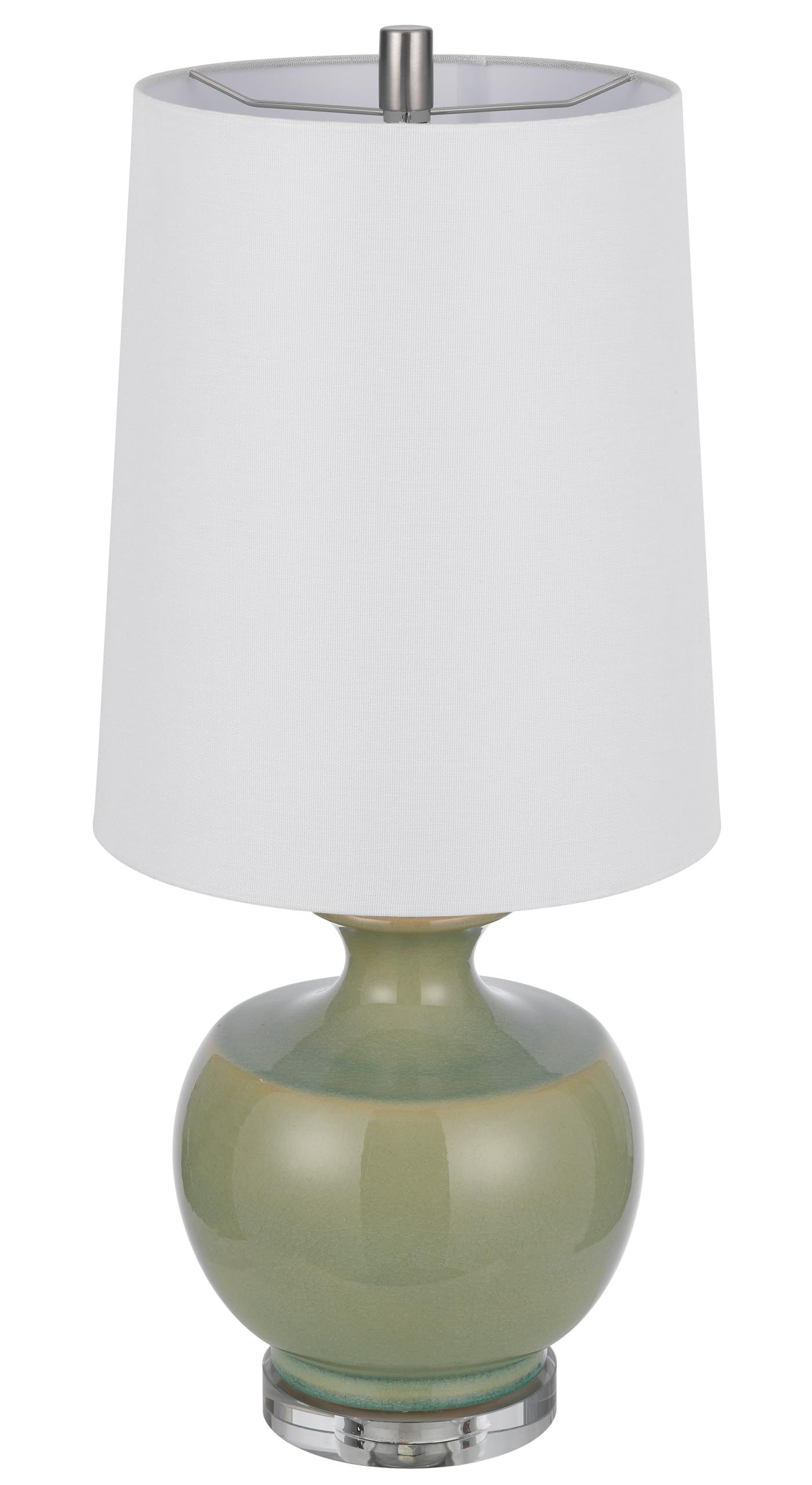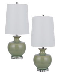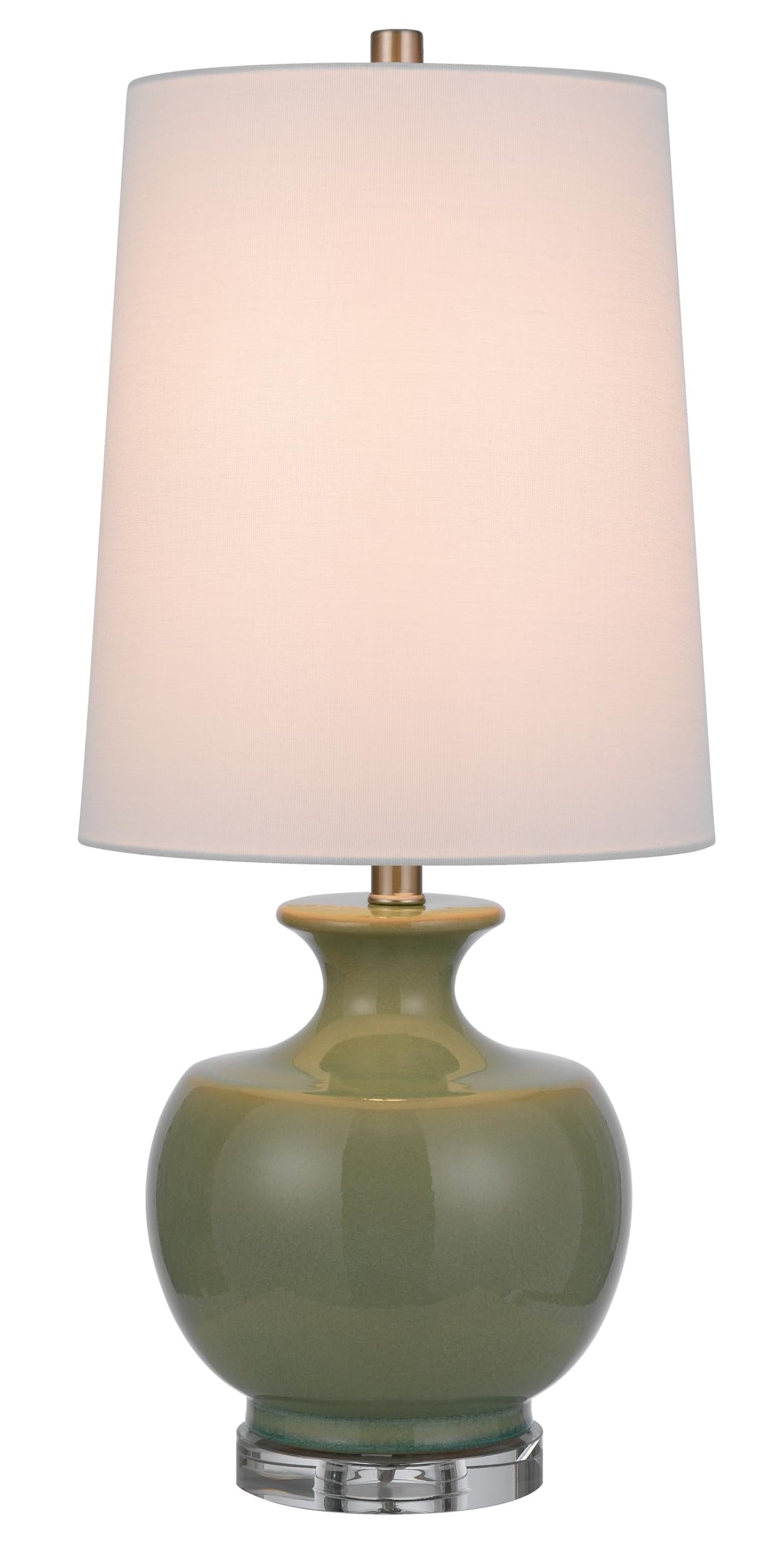 Cal Lighting 100W Kawela Mustard Green Ceramic Table Lamp With Crystal Base - Sold In Pairs