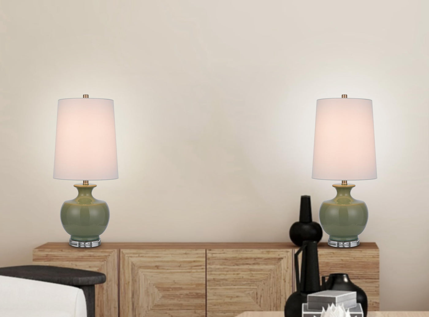 Transform your living space with the exquisite Cal Lighting Mustard Green Table Lamps. This stylish set of two lamps combines functionality with modern aesthetics, making it an ideal addition to any room.