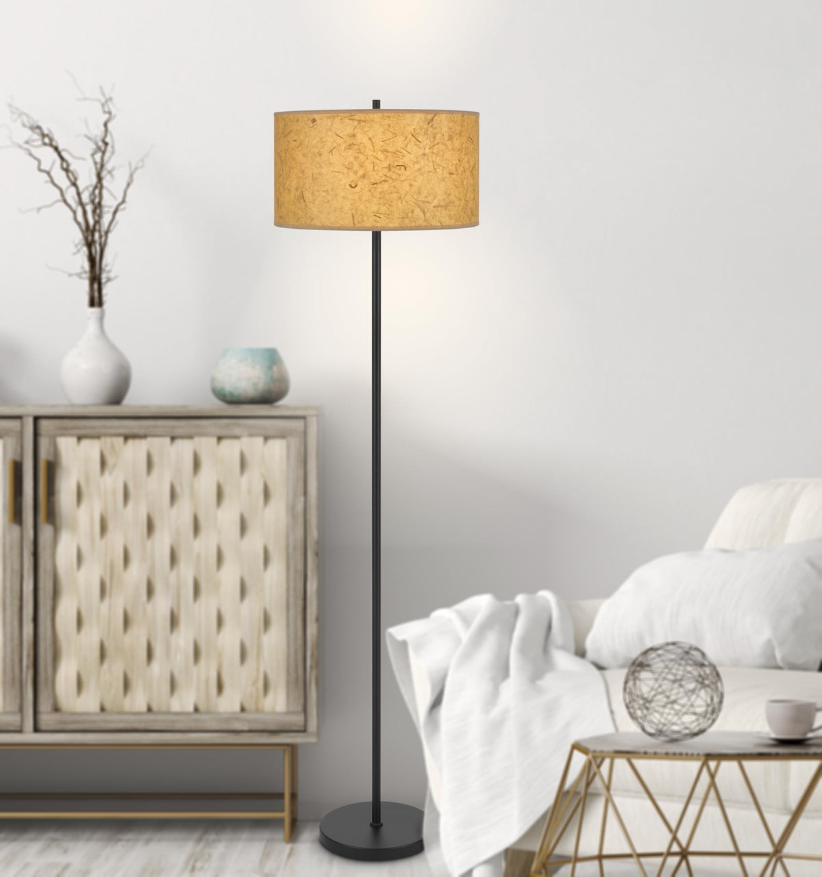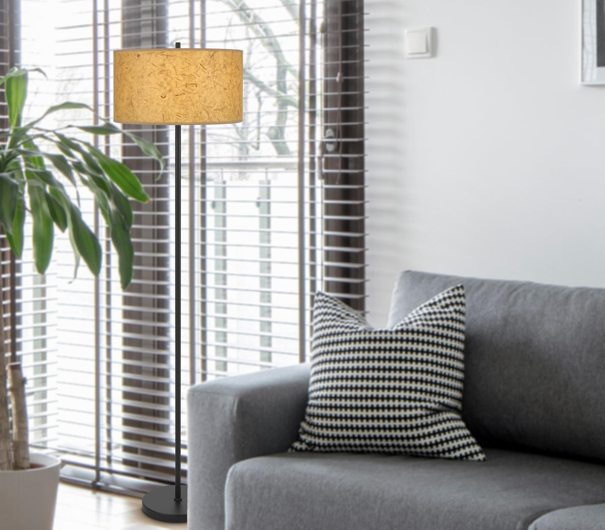 Cal Lighting 100W Octavia Black Metal Pole Lamp With Kraft Shade - Stylish Floor Lighting