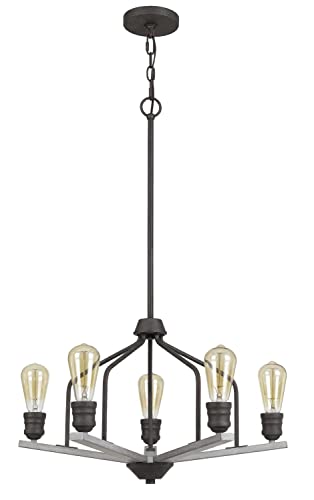 Cal Lighting 24" Transitional Five Light Chandelier, Textured Bronze/Dark Finish, Corming Collection