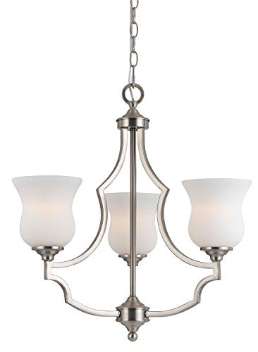 Q: What is the finish of the Barrie Three Light Chandelier?A: The Barrie Three Light Chandelier features a brushed steel finish, giving it a modern and transitional look.