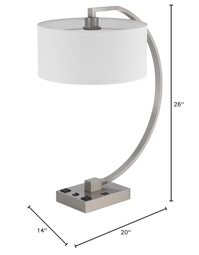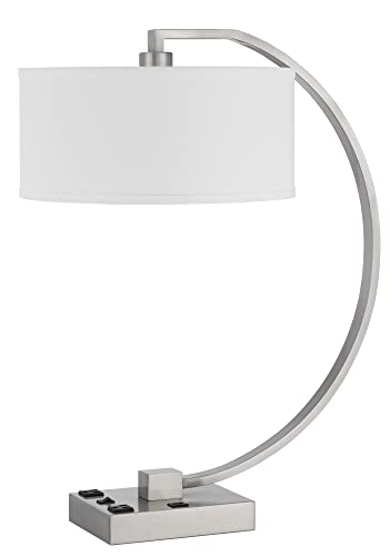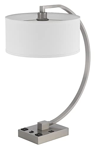 Cal Lighting Belfort Desk Lamp, Metal, Brushed Steel, 2 Power Outlets, 1 Usb Charging Port, 26"H