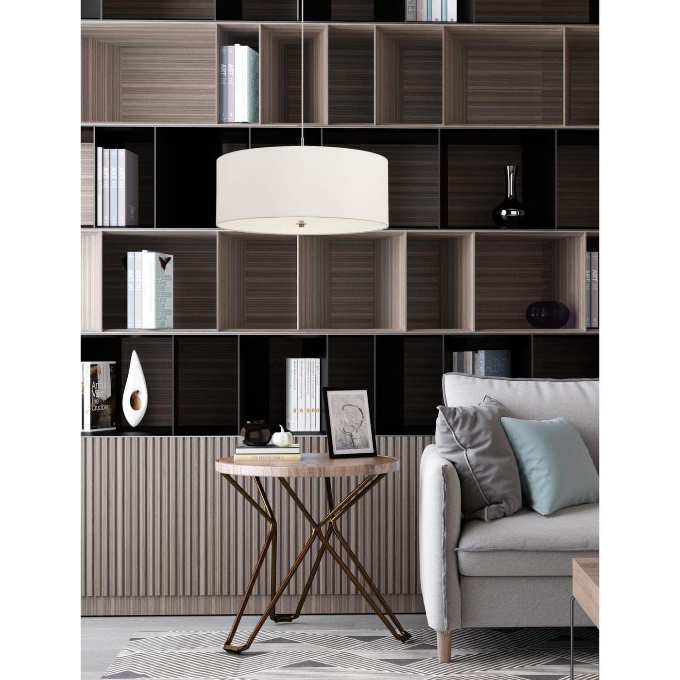 Cal Lighting Contemporary Three Light Pendant, White Fabric, 24", Addison Collection