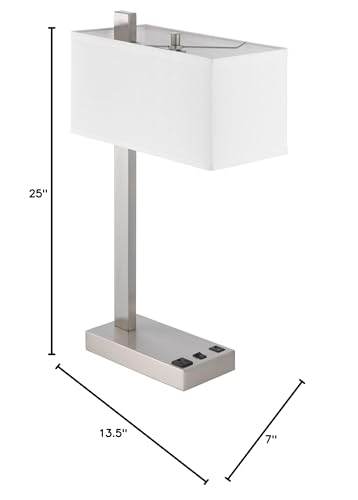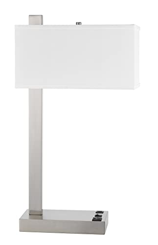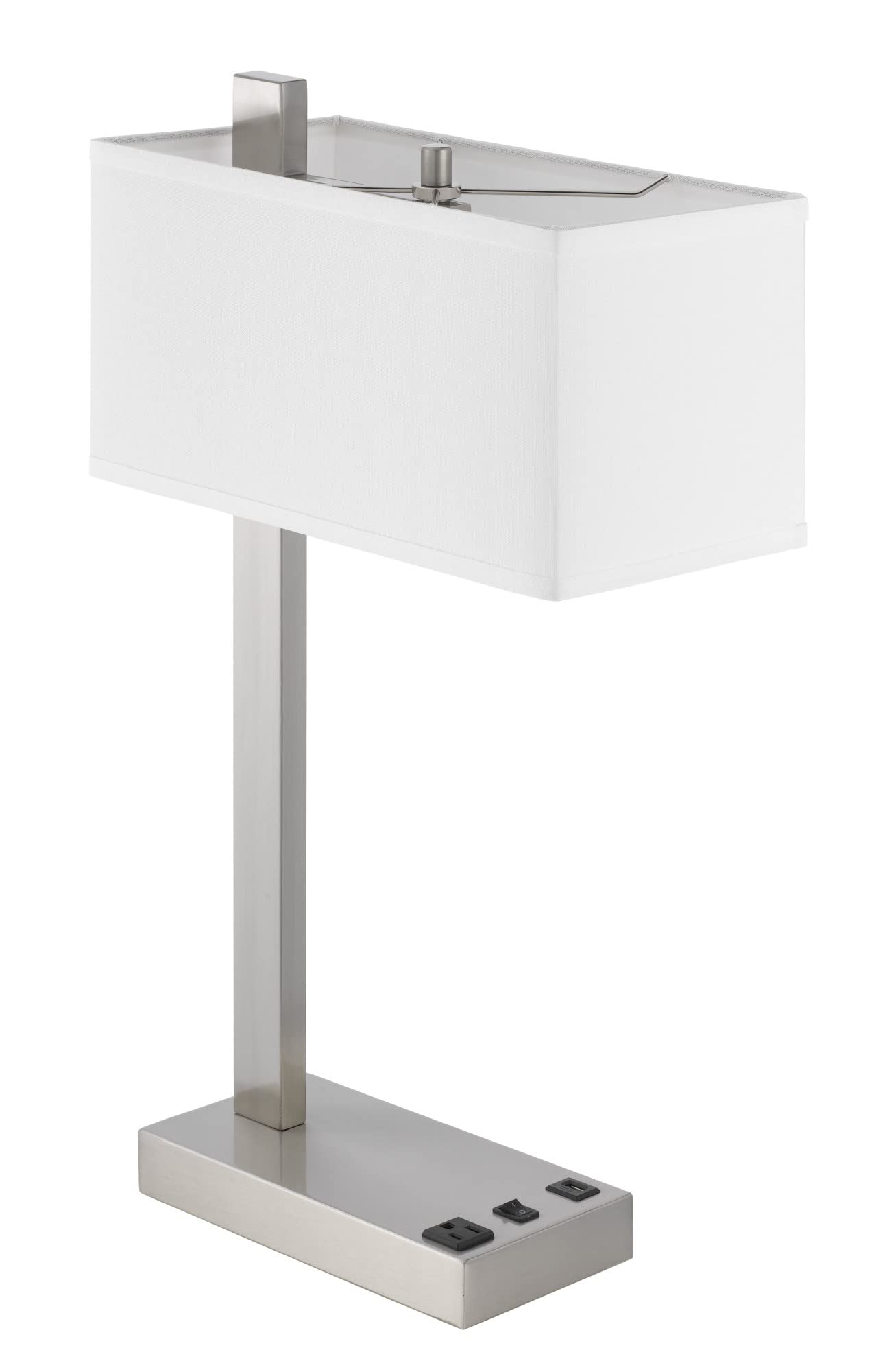 Cal Lighting Drancy Metal Desk Lamp With Usb Port & Power Outlet, Brushed Steel, 25"H