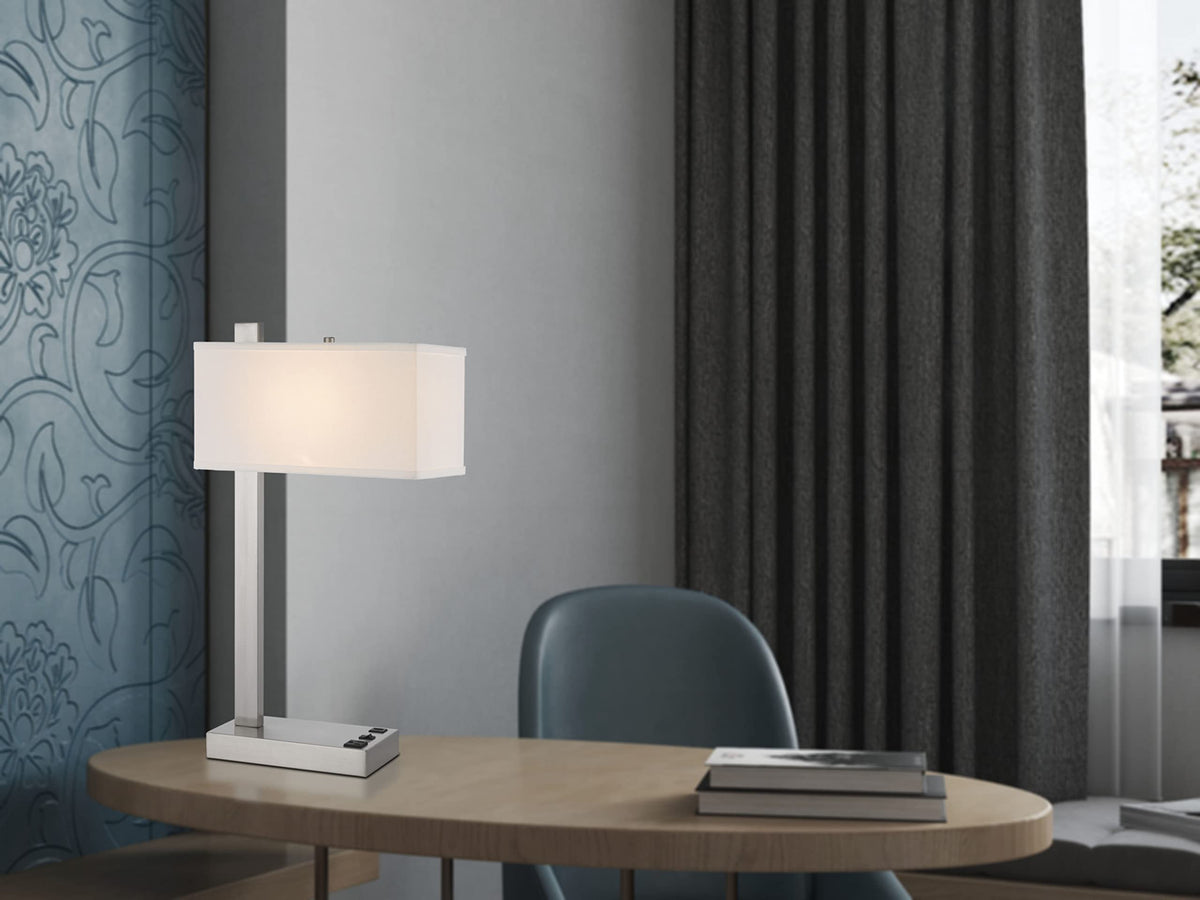 Elevate your workspace or bedside table with the modern elegance of the Brushed Steel Metal Desk Lamp by Cal Lighting. This stylish lamp combines functionality with contemporary design, making it an essential addition to any room.