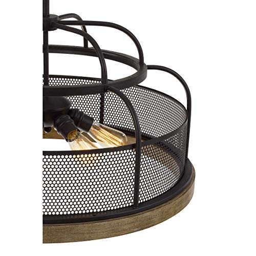 Q: What materials are used in the construction of this chandelier?A: This chandelier is made from a combination of iron and pine wood, featuring a stylish Iron/Light Oak finish.