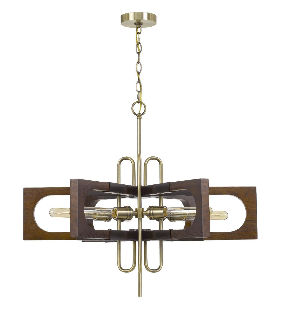 Cal Lighting Fx-3728-6 Transitional Six Light Chandelier From Sneek Collection In Brass - Antique Brass/Wood, 30.00 Inches