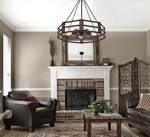 - Hand-Applied Faux Wood Finish: The expertly crafted faux wood finish adds an authentic touch to the chandelier, offering the beauty of wood without compromising on durability.