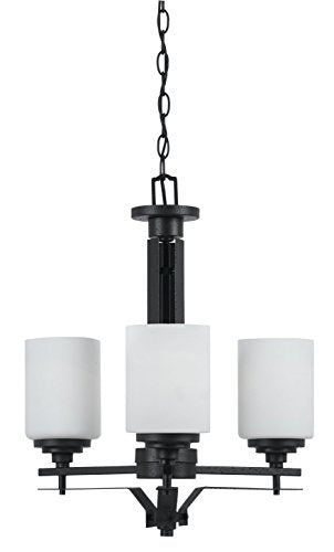 Cal Lighting Judson 3-Light Chandelier, Hand Forged Iron, Black, Glass Shades, 60W X 3