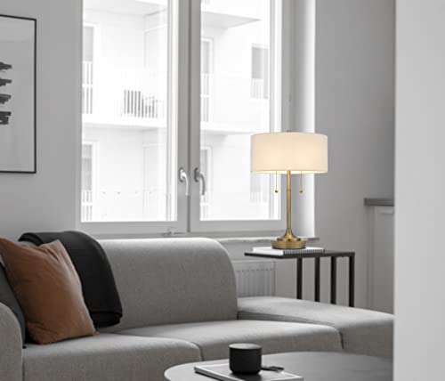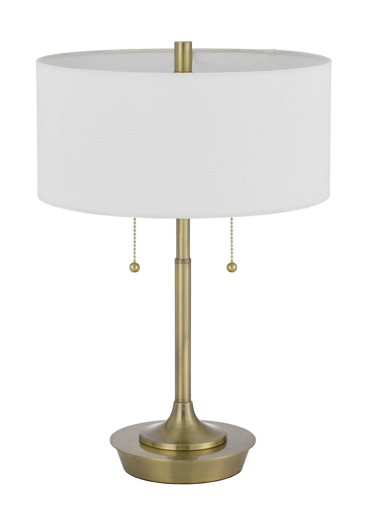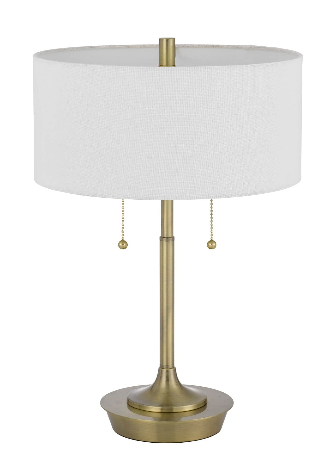 Cal Lighting Kendal Metal Table Lamp With Drum Shade & Pull Chain Switch, 20"H