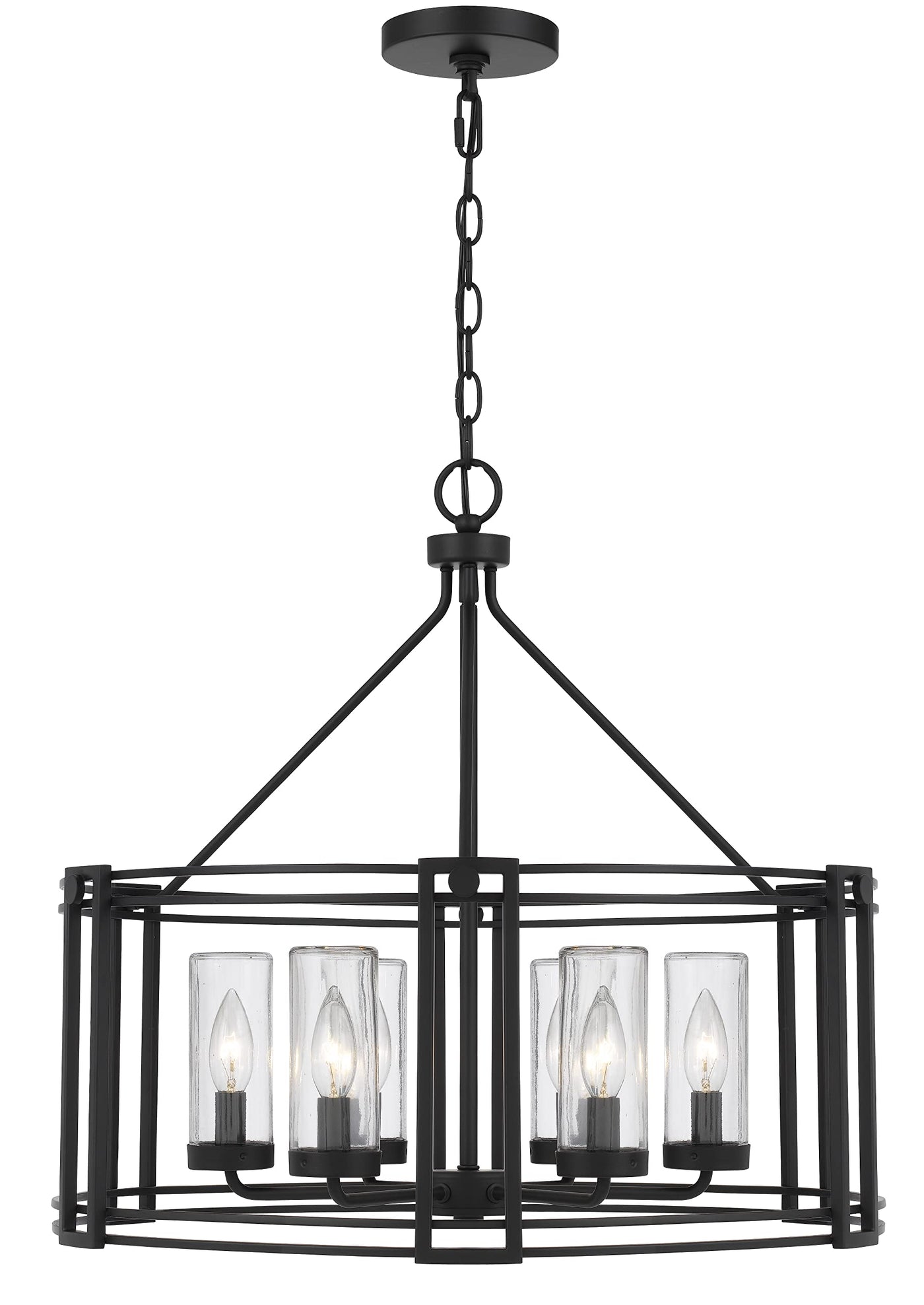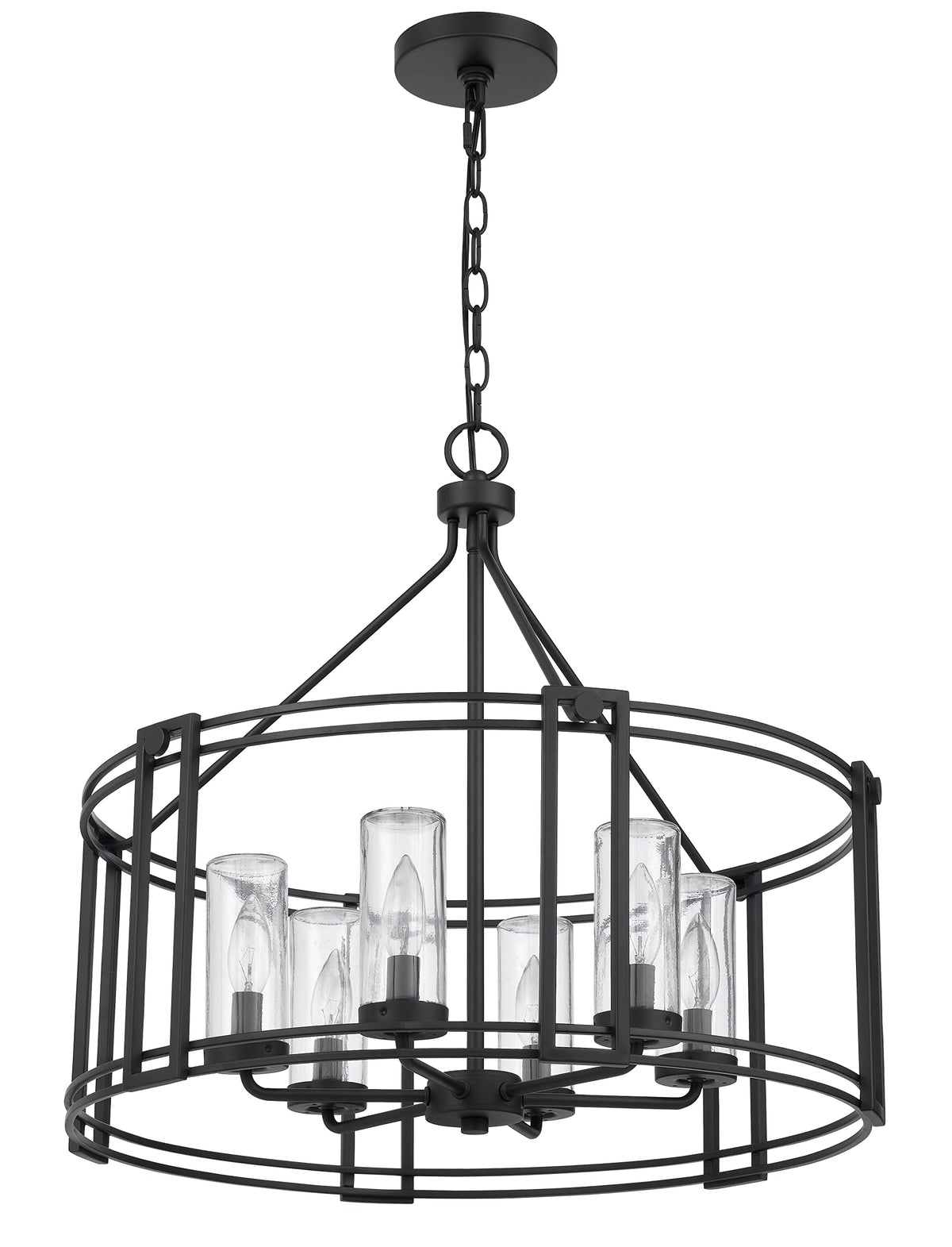 Cal Lighting Luton Cage Metal Chandelier With Glass Shades, Iron Finish