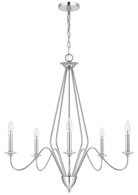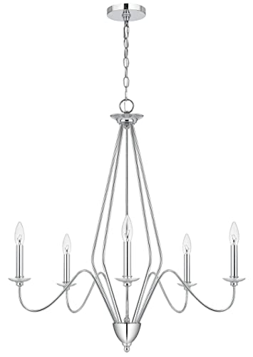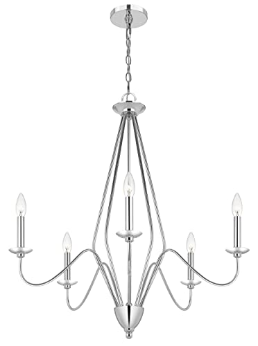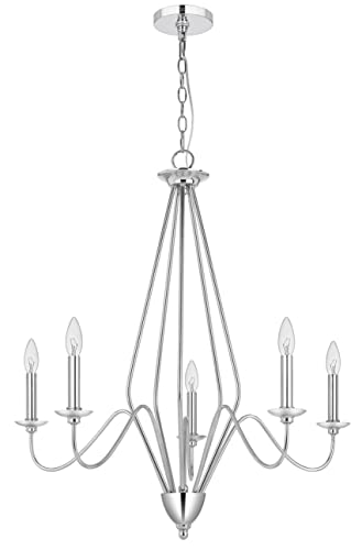 Q: Is the chrome finish of this chandelier easy to clean?A: Yes, the chrome finish on the Cal Lighting FX-3774-5 chandelier is relatively easy to maintain. You can clean it with a soft, damp cloth to remove dust and fingerprints, ensuring it stays looking polished.