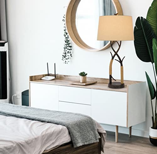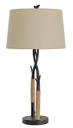 Cal Lighting Pecos Metal Tree Branch Table Lamp, Linen Shade, 32"H, Wrapped Ropes
