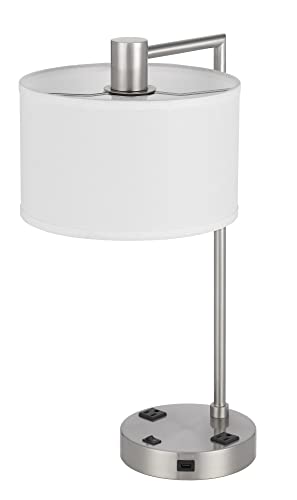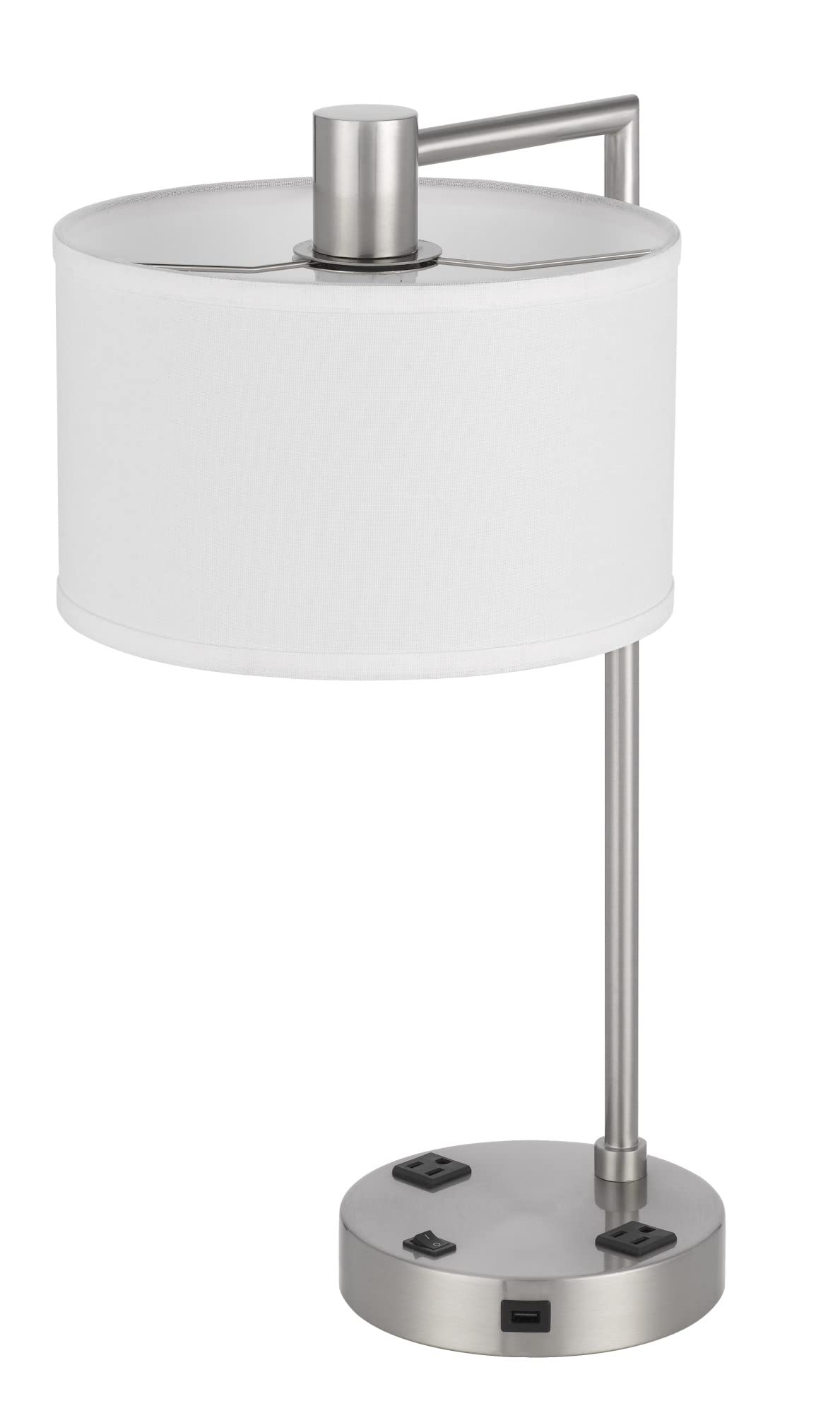 Cal Lighting Roanne Brushed Steel Desk Lamp With Usb Port & Power Outlets, 22" Height
