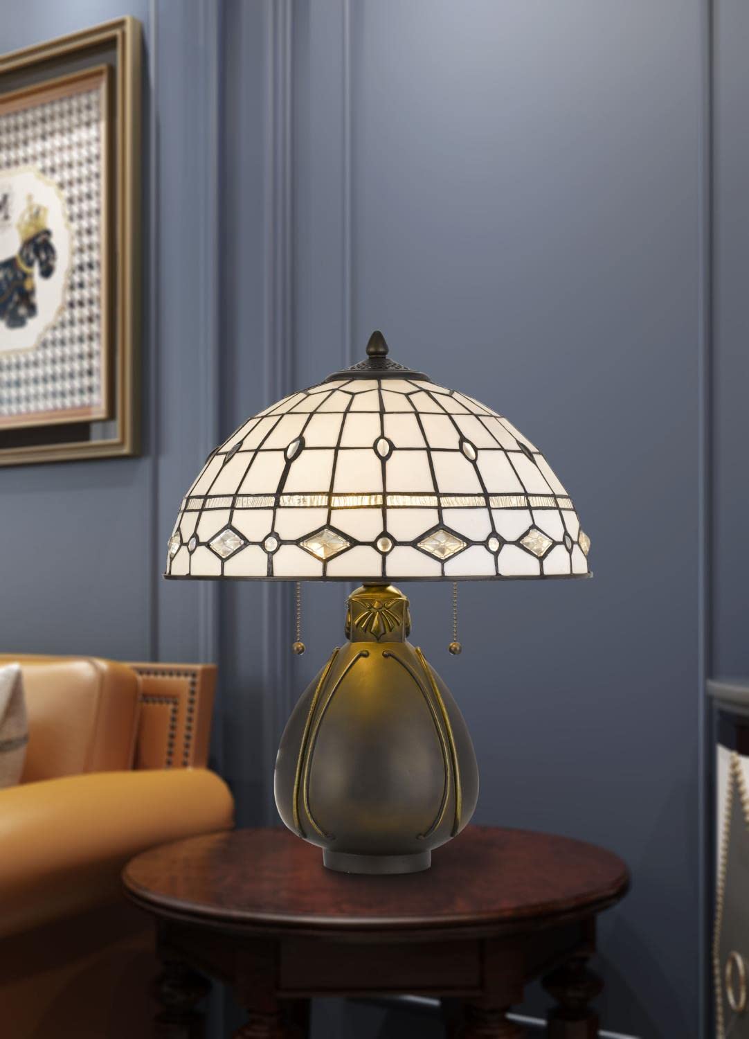 Q: What type of light bulbs does the 60W x 2 Tiffany Table lamp use?A: The 60W x 2 Tiffany Table lamp is compatible with standard light bulbs up to 60 watts each, allowing you to customize the brightness according to your preference.
