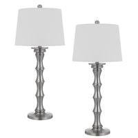 Transform your living space with a tropical touch using this exquisite set of bamboo-style stick table lamps from Cal Lighting. Designed to enhance any décor, these lamps blend elegance and functionality seamlessly. With a stunning brushed steel metal finish and a weighted base for stability, they are perfect for both style and practicality. The accompanying white linen fabric shades add a soft, inviting glow to any room, making them ideal for reading, relaxing, or entertaining.