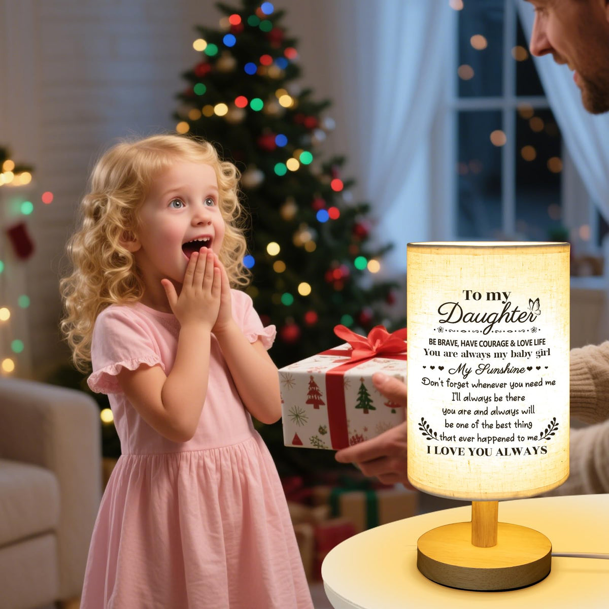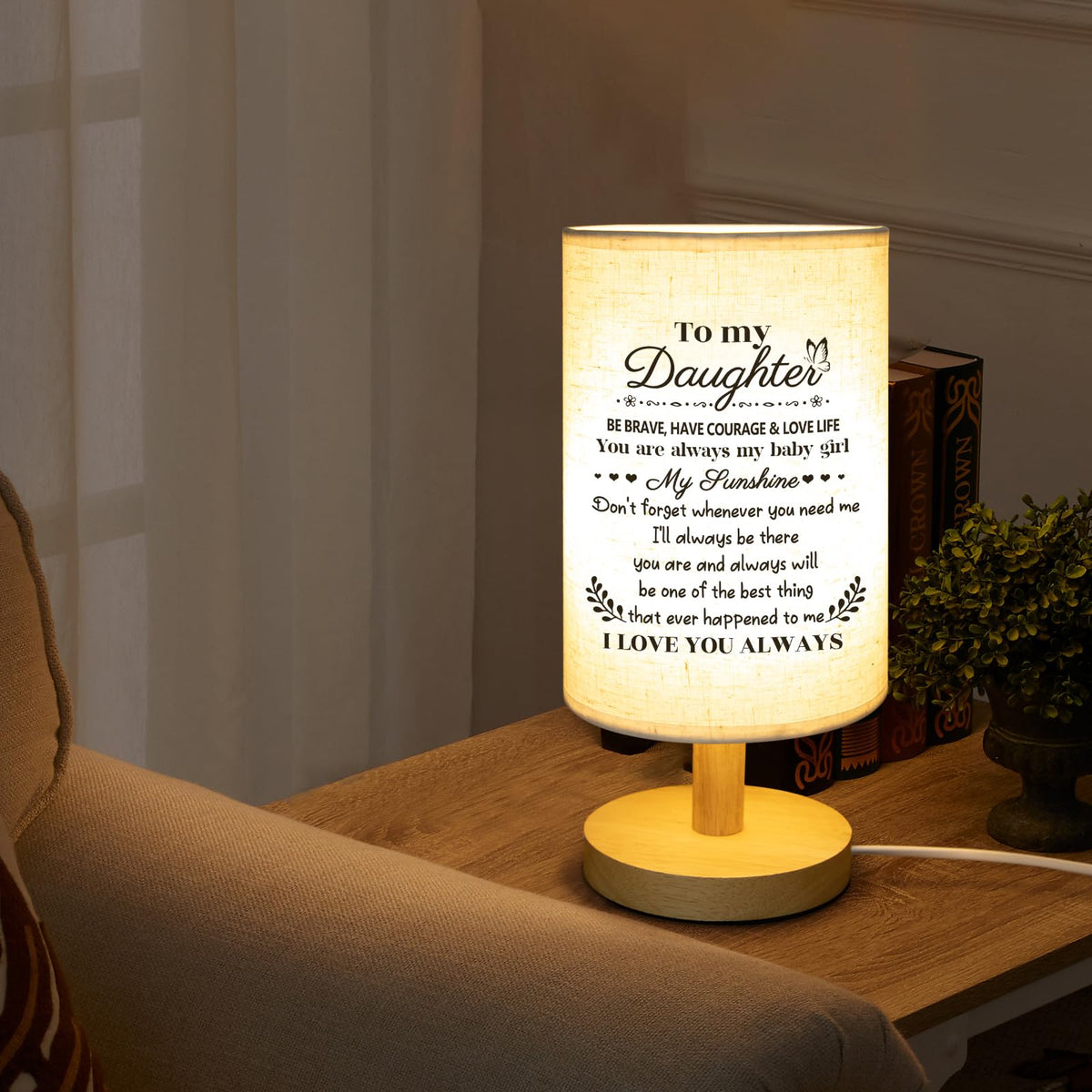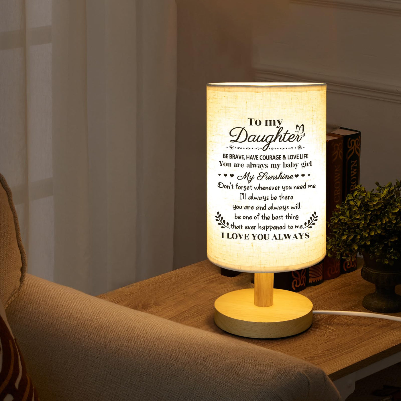 Calibron Gifts For Daughter From Mom, Daughter Birthday Gifts Fabric Lamp, Birthday Gifts For Daughter Table Lamp With Wooden St