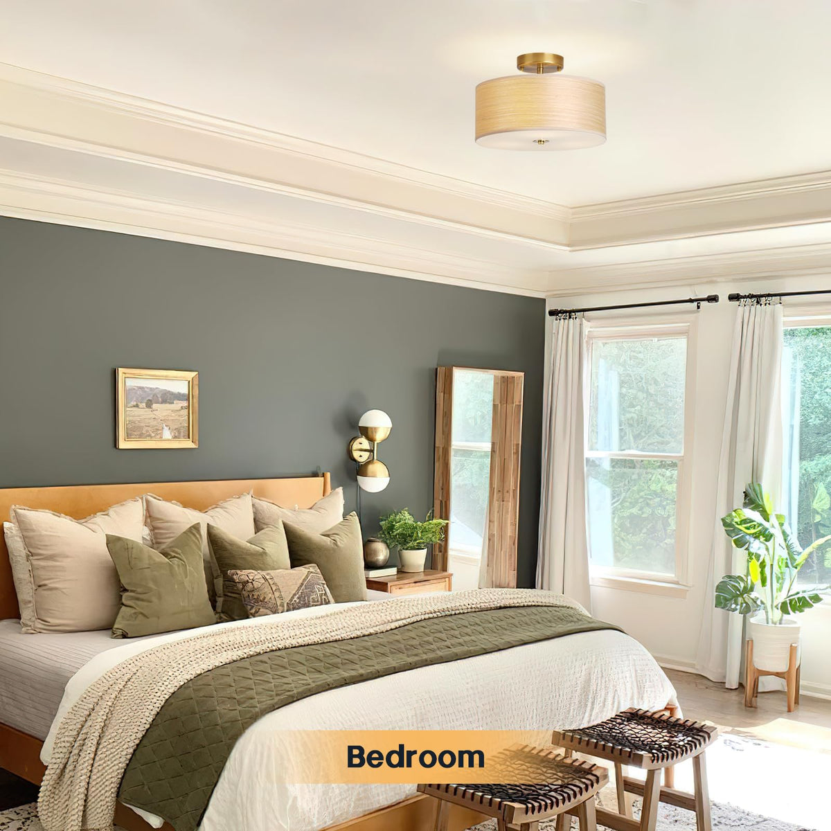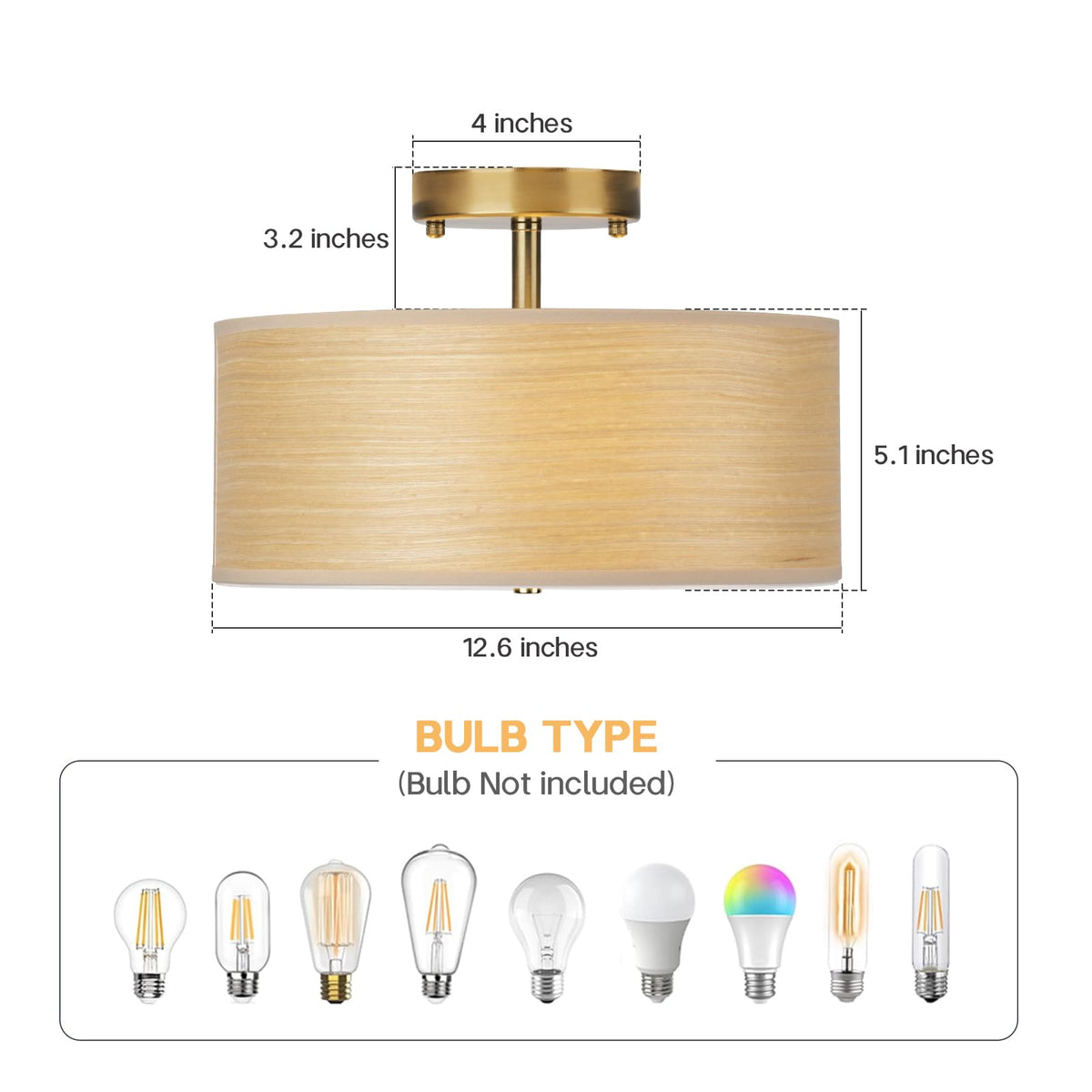 Elevate Your Homes Interior With Our Exquisite Calokes Gold Drum Ceiling Light, An Embodiment Of Sophistication And Modernity. Meticulously Crafted With A 12.6-Inch Diameter And An 8.3-Inch Height, This Semi-Flush Mount Ceiling Fixture Features A Striking Drum Shade Made From Natural Wood Veneer That Brings A Warm, Rustic Touch To Any Space. The Elegant Gold Finish On The Sturdy Metal Body Enhances The Luxurious Appeal, Making It A Standout Piece In Any Room. This Ceiling Light Is Not Just About Style But Also About Functionality. It Is Equipped With Three E26 Sockets That Accommodate Up To 60W Bulbs, Suitable For A Range Of Lighting Options Including Led, Cfl, Incandescent, And Halogen Bulbs (Not Included). This Versatility Allows You To Choose The Type Of Illumination That Best Fits Your Space And Mood. Moreover, The Fixture Is Fully Dimmable When Used With Compatible Bulbs And A Dimmer Switch, Offering You Complete Control Over The Lighting Intensity To Create The Perfect Ambiance For Any Occasion. The Design Of This Light Fixture Makes It Highly Suitable For Various Applications. Its Semi-Flush Mount Is Ideal For Rooms With Low To Medium Ceiling Heights, Ensuring It Provides Ample Lighting Without Overwhelming The Space. Whether Installed In Your Living Room, Dining Room, Bedroom, Kitchen, Hallway, Or Entryway, This Light Promises To Enhance Your D Cor While Providing Functional, Ambient Lighting. Installation Is Straightforward And User-Friendly, With All Necessary Mounting Hardware Included. This Ensures A Quick And Secure Setup, Allowing You To Enjoy Your New Lighting Fixture Without Any Hassle. Designed To Resist Rust And Corrosion, The Calokes Gold Drum Ceiling Light Is Built To Last, Ensuring Enduring Beauty And Functionality In Your Home. Furthermore, This Product Comes With A 1-Year Warranty, Assuring Quality And Satisfaction. Our Dedicated Customer Service Team Is Always Ready To Assist You With Any Questions Or Concerns, Ensuring A Worry-Free Purchase. Elevate Your Living Space With This Stunning, Durable, And Versatile Ceiling Light, Which Combines Timeless Design With Practical Functionality To Meet All Your Lighting Needs.