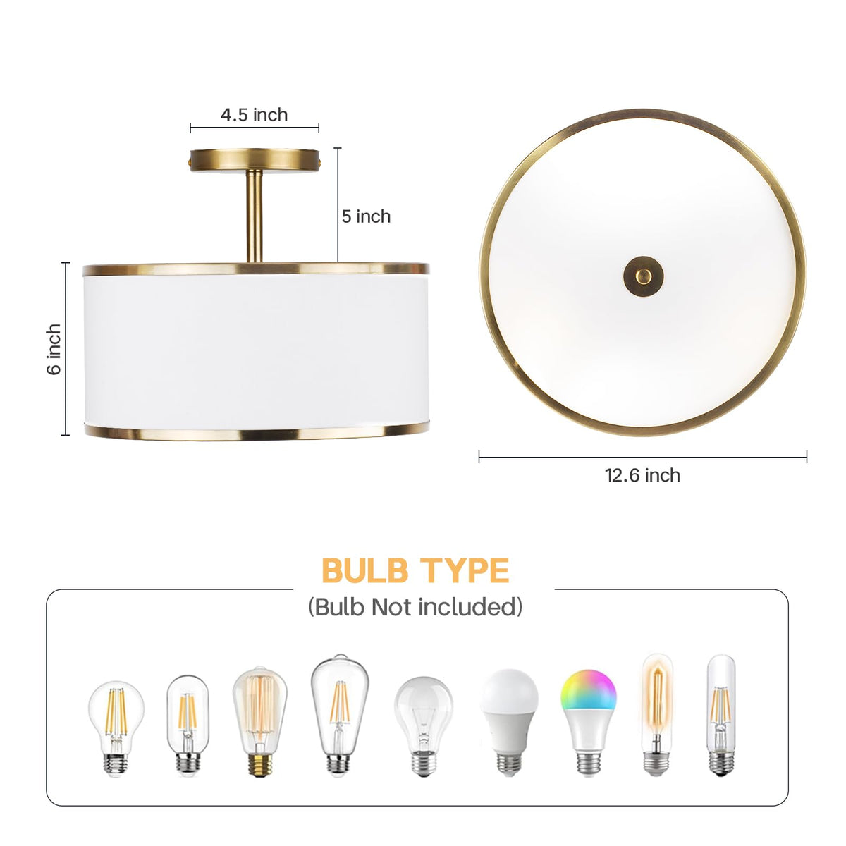 Enhance Your Living Space With The Elegant And Timeless Design Of Our Semi Flush Mount Ceiling Light. This Light Fixture Features A Stunning Interplay Of A Crisp White Fabric Drum Shade And A Contrasting Brushed Gold Metal Finish, Bringing A Modern Update To Your Vintage Or Mid-Century Modern Decor. The Soft Glow From The White Linen Drum Shade Is Further Diffused By A Frosted Glass Cover, Creating A Warm And Inviting Atmosphere In Any Room. Designed For Versatility, This Farmhouse-Style Ceiling Light Is Perfect For A Wide Range Of Settings. Whether You'Re Looking To Illuminate Your Bedroom, Kitchen, Dining Room, Hallway, Entryway, Or Foyer, This Light Fixture Will Blend Seamlessly With Your Existing Decor. Its Minimalist Design With A Matte Gold Brass Finish And White Fabric Shade Complements All Interior Styles, Making It An Ideal Choice For Both Residential And Commercial Spaces, Including Hotels, Restaurants, Bars, And Caf S. The Light Fixture Is Equipped With Three E26 Standard/Medium Base Sockets, Each Supporting A Maximum Of 60W. It Is Compatible With Led, Cfl, Halogen, And Incandescent Bulbs, Giving You The Flexibility To Choose The Type Of Lighting That Best Suits Your Needs. If You Use Dimmable Bulbs And A Compatible Dimmer Switch, You Can Easily Adjust The Brightness To Create The Perfect Ambiance For Any Occasion. Please Note That Bulbs And Dimmer Switch Are Not Included. Installation Is A Breeze With All Necessary Mounting Hardware And An Instruction Manual Included. The Fixture Measures 12.6 X 12.6 X 10.27 (L X W X H), Making It Suitable For Various Ceiling Heights And Room Sizes. The High-Quality Construction Ensures Durability And Long-Lasting Performance, Providing You With Reliable Lighting For Years To Come. In Addition To Its Stylish Appearance And Practical Functionality, This Semi Flush Mount Ceiling Light Comes With A 1-Year Warranty, Offering You Peace Of Mind And Confidence In Your Purchase. If You Have Any Questions Or Require Assistance, Our Dedicated Customer Service Team Is Always Ready To Help. Transform Your Home With This Exquisite Semi Flush Mount Ceiling Light, Combining Classic Design Elements With Modern Elegance To Create A Lighting Solution That Is Both Beautiful And Functional. Perfect For Any Room In Your Home Or Commercial Space, This Light Fixture Will Undoubtedly Enhance The Overall Aesthetic And Ambiance.