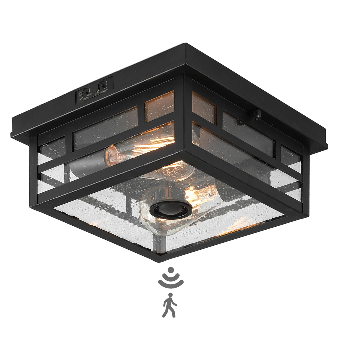 Calokes Outdoor Flush Mount Motion Sensor Ceiling Light - Timeless Industrial Design With Seeded Clear Glass For Your Porch, Dri