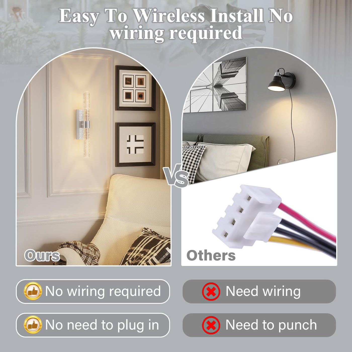 Camuucci Battery Operated Sliver Wall Sconce 12000Mah Rechargeable Battery Powered Wall Lighting Indoor Not Hardwired Dimmable W