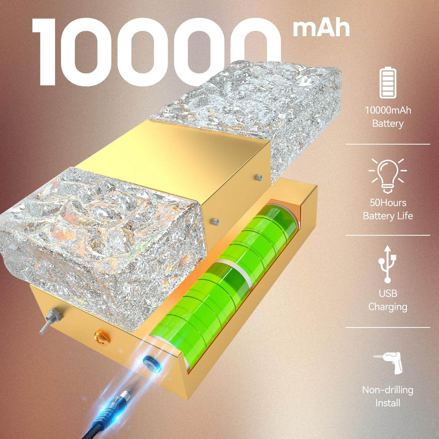 - **Long-lasting Performance**: Equipped with a powerful built-in 12,000mAh rechargeable battery, this wall sconce ensures extended use without the need for frequent bulb replacements. The included charger makes it easy to keep your sconce powered, providing reliable illumination during power outages and everyday use.