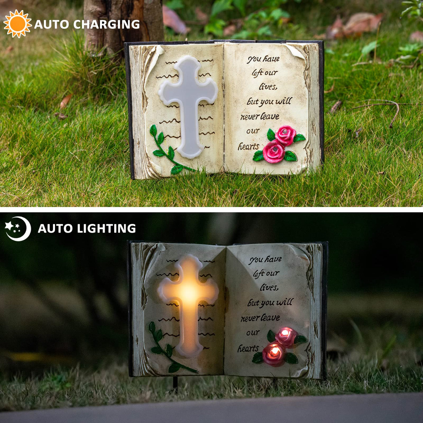 Candieslife Outdoor Solar Bible Cross Garden Stakes Lights, Waterproof Memorial Grave Decorations Gifts For Cemetery Outdoors La