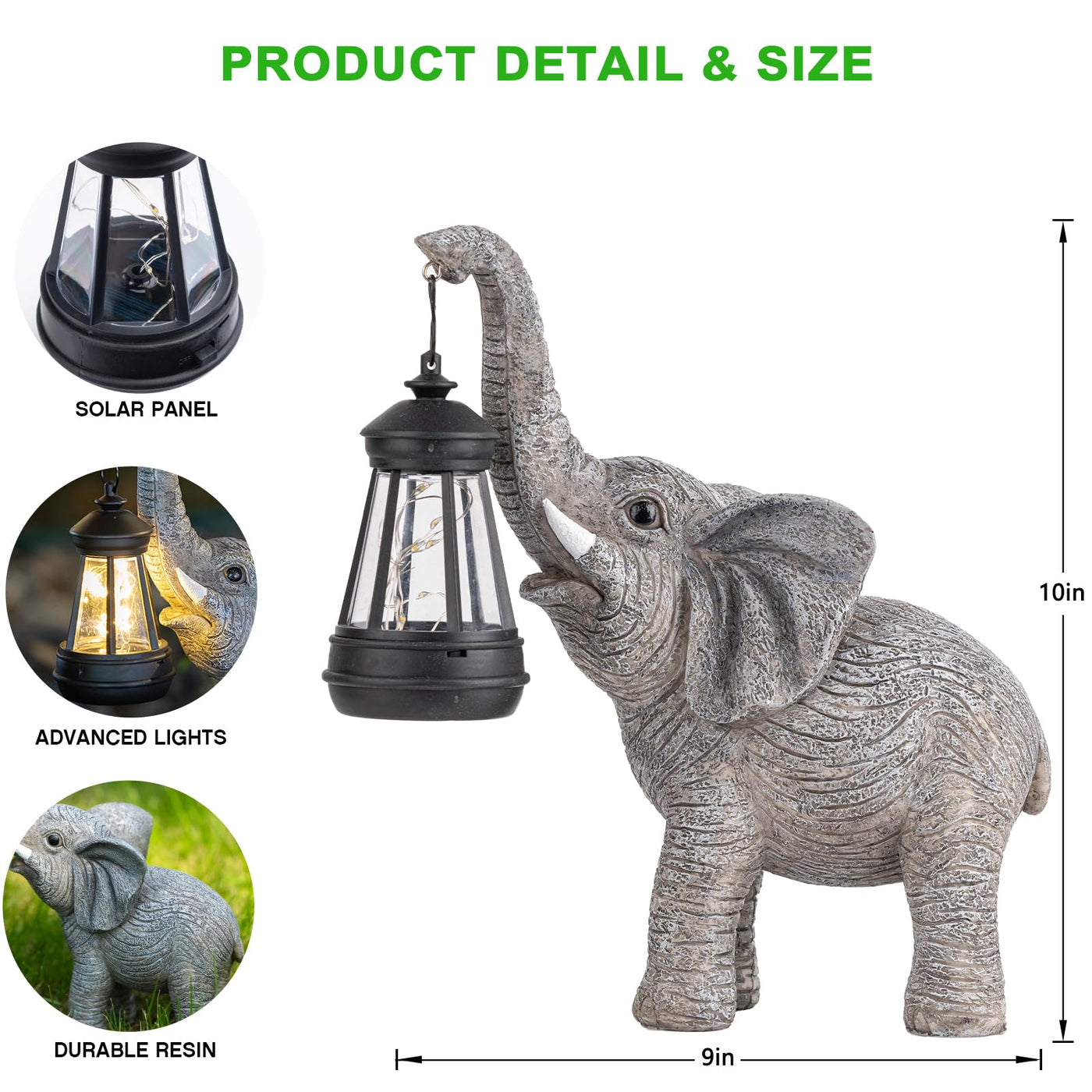 Candieslife Solar Garden Statue Lights Elephants Figurine With Solar Lantern, Outdoor Yard Decorations For Patio Porch Home, Chr