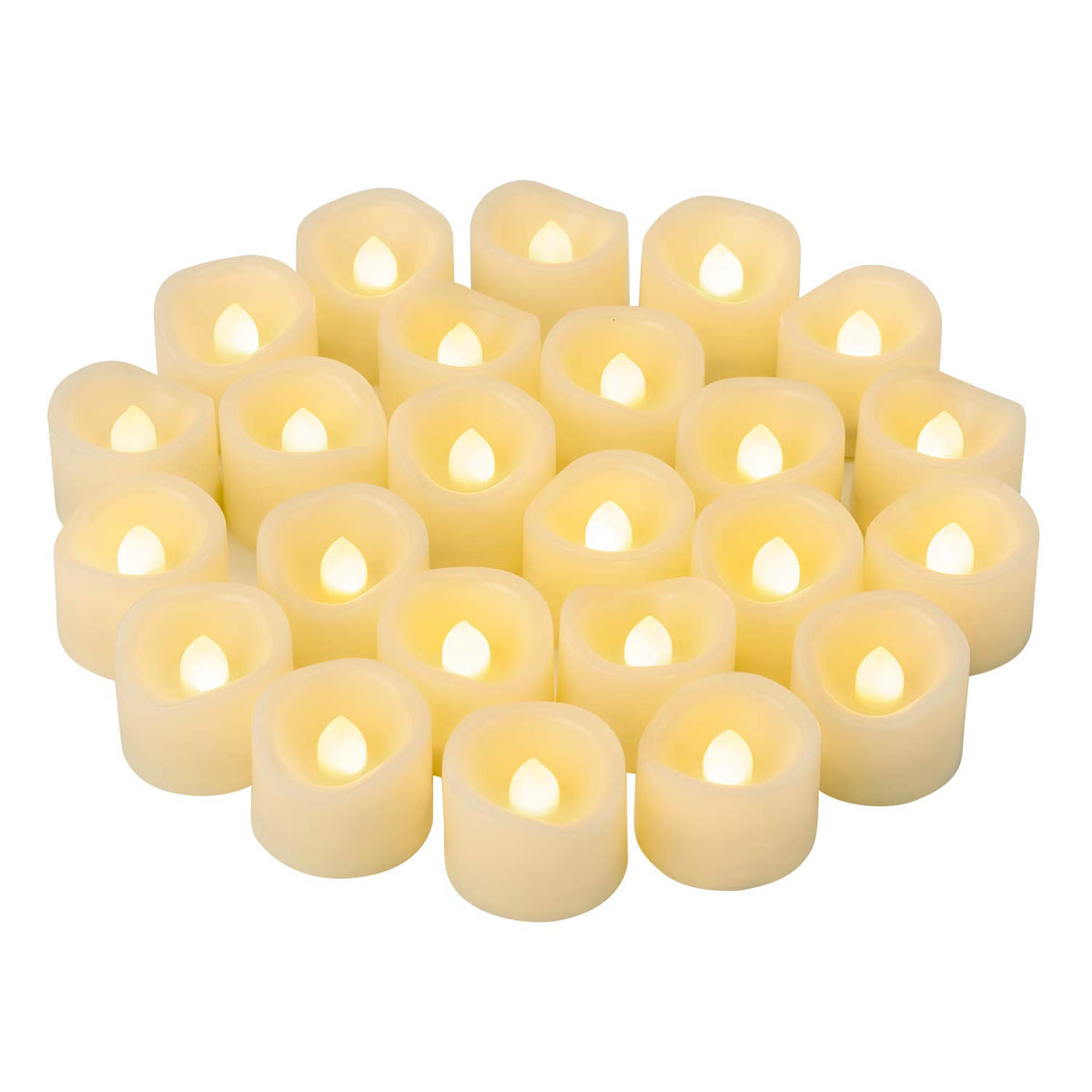 Candle Idea 24 Pcs Led Flameless Flickering Plastic Tealight Votive Candle Bulk Battery Operated/Electric Flicker Small Tea Lights Bright Fake Candles For Halloween Christmas Lantern Decorations