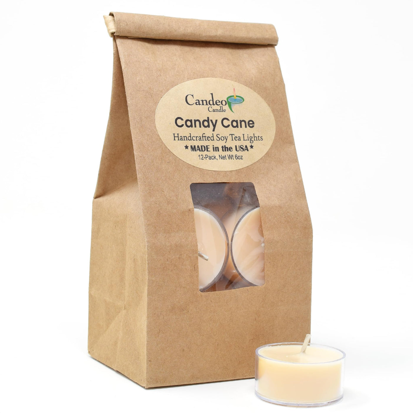 Candy Cane Scented - 12 Pack - Scented Tealight Candles - Soy Beeswax Blend - Handmade In The Usa - Candeo Candle - Holiday Christmas Scents