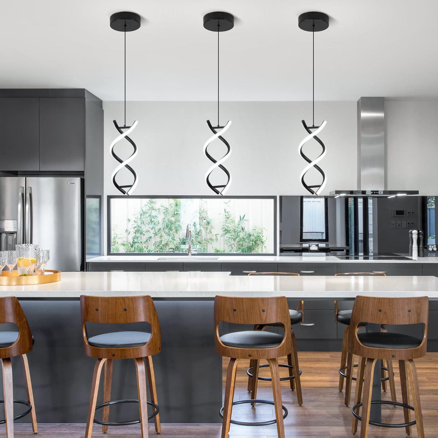 Q: What type of light does this pendant fixture provide?A: This pendant light fixture provides a cool white light with a color temperature of 6000K, ideal for brightening up spaces like kitchens, dining rooms, and more.