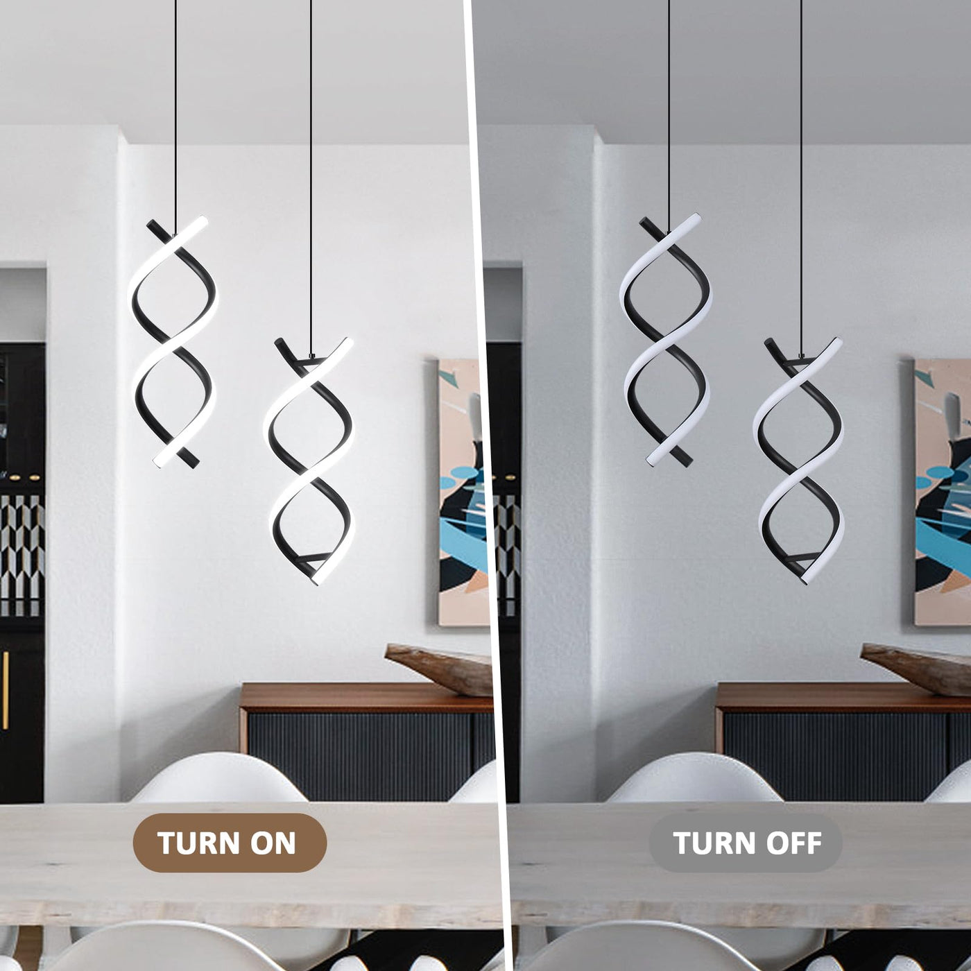 Fashionable Design: This modern pendant light features a unique interlocking spiral design that adds an avant-garde style to your home decor, ensuring it remains trendy for years to come.