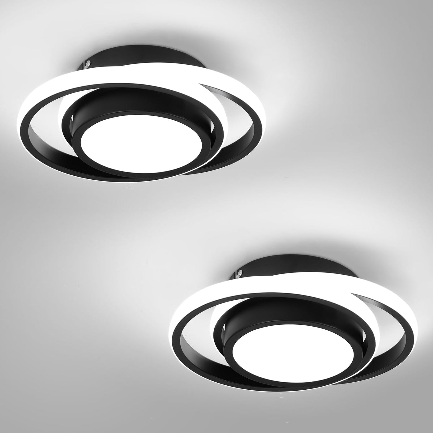 Caneoe 2 Packs Small Modern Led Ceiling Light 2 Rings Creative Design Ceiling Lamp Indoor Hallway Lighting Fixtures For Hallway Living Room Bedroom Kitchen Office (Black)