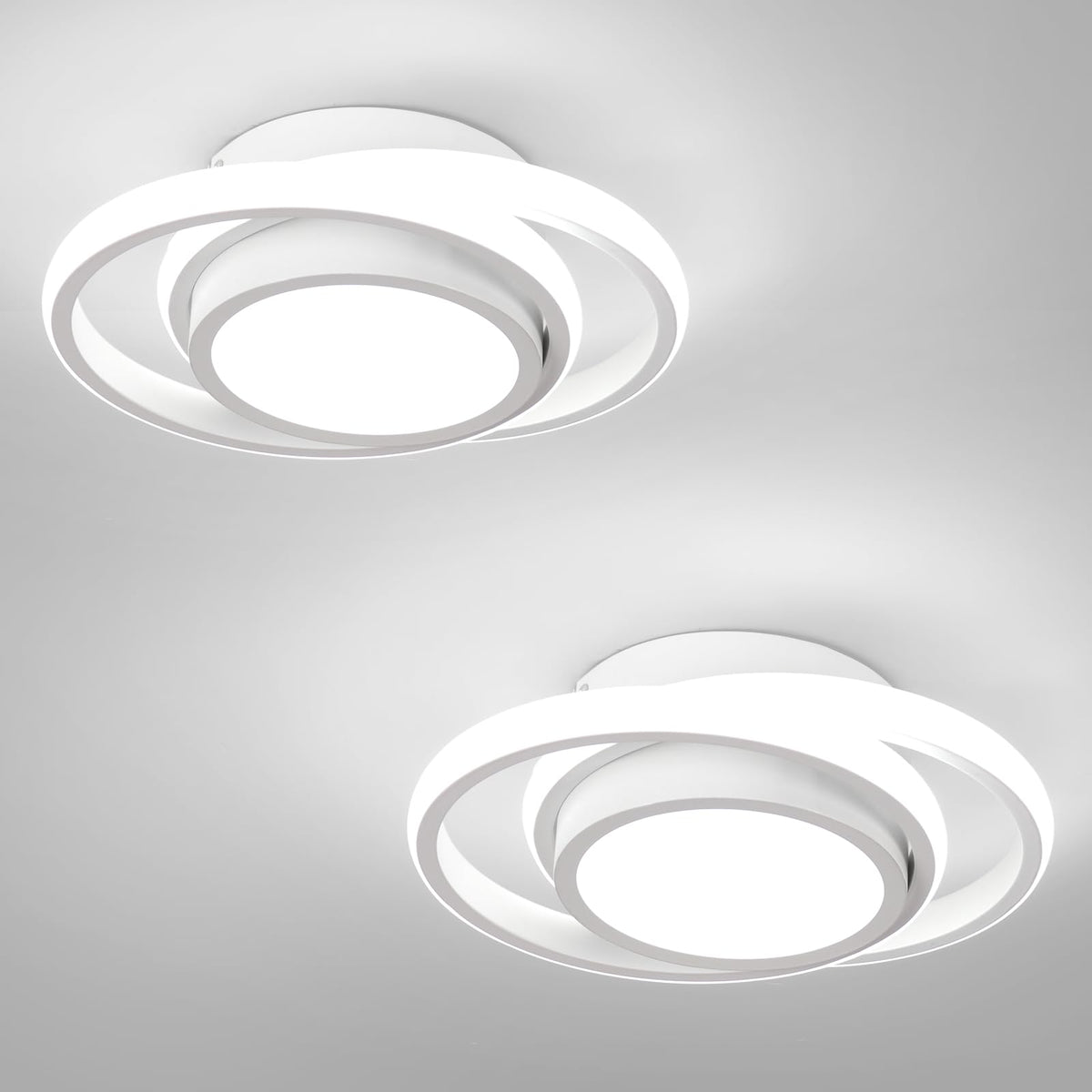 Caneoe 2 Packs Small Modern Led Ceiling Light 2 Rings Creative Design Ceiling Lamp Indoor Hallway Lighting Fixtures For Hallway Living Room Bedroom Kitchen Office (White)