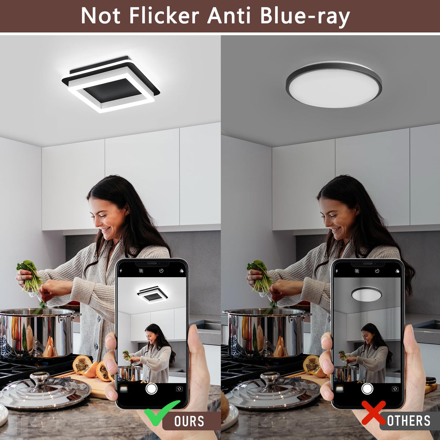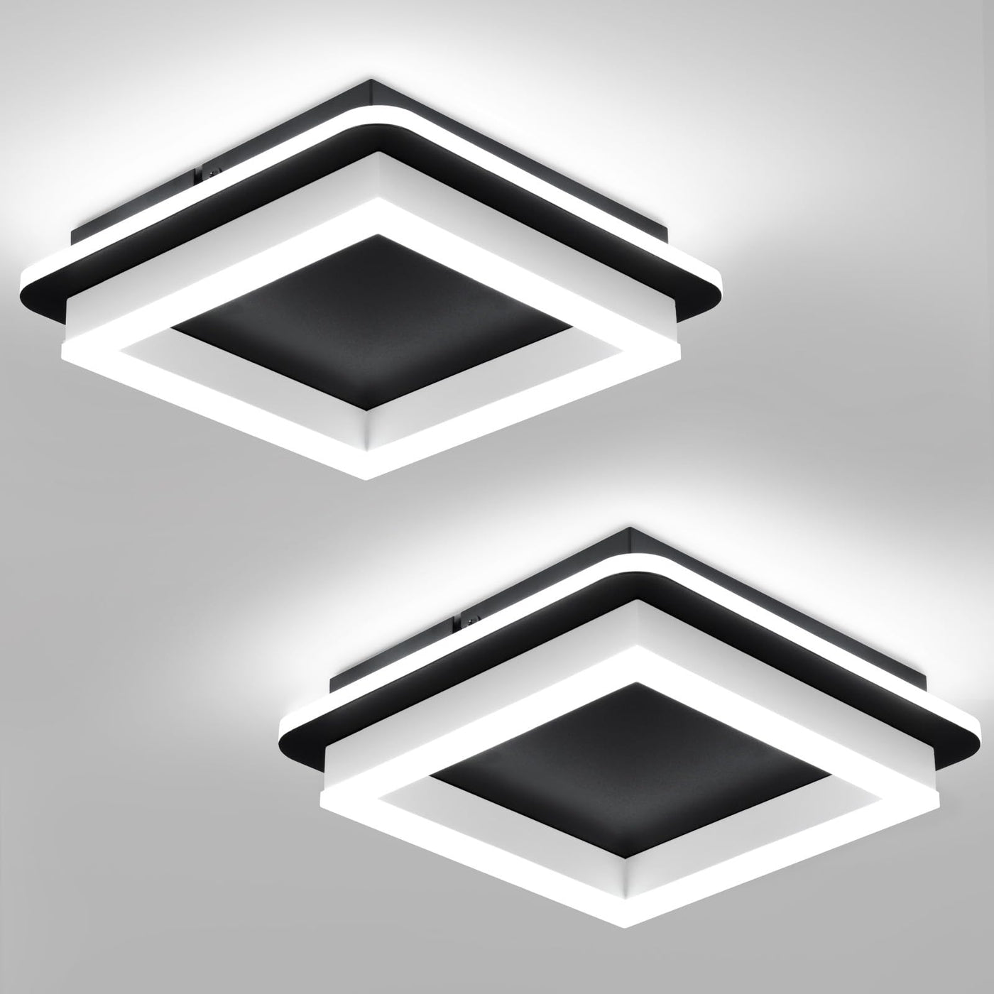 Caneoe 2 Packs Square Flush Mount Ceiling Light 6000K Modern Led Ceiling Light Fixture Minimalist Hallway Lighting Fixture Ceiling Lamp For Hallway Entryway Bedroom Balcony (Matte Black)